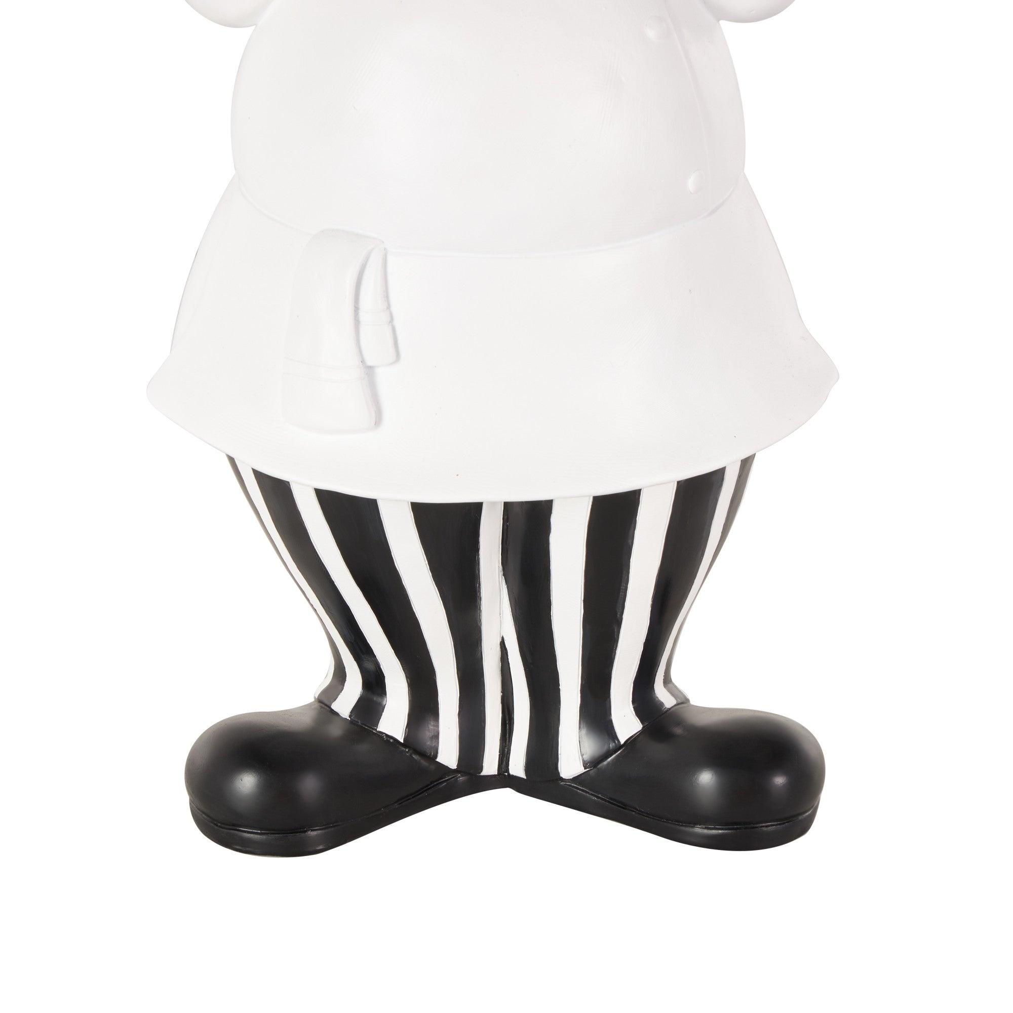 •Shiny home decor figurine is shaped like a chef with a round tray on each hand and a striped pattern on the pants, giving it a charming and classic aesthetic that suits any decor style