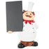 •Matte home decor figurine has a whimsical chef shape with a rectangular chalkboard, making it an eye-catching piece in any setting