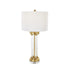 This accent lamp can effortlessly enhance the aesthetic appeal of various spaces like living rooms, bedrooms or study areas. Requires 1 60W Type A E26/Medium (Standard) bulb. This item ships in 1 carton. Comes with a 62" cord length. Suitable for indoor use only. This item ships fully assembled in one piece. Table lamp comes with a drum shaped shade that measures 15 x 15 x 10 inches. Includes a on/off switch. This is a single accent lamp. Glam style.