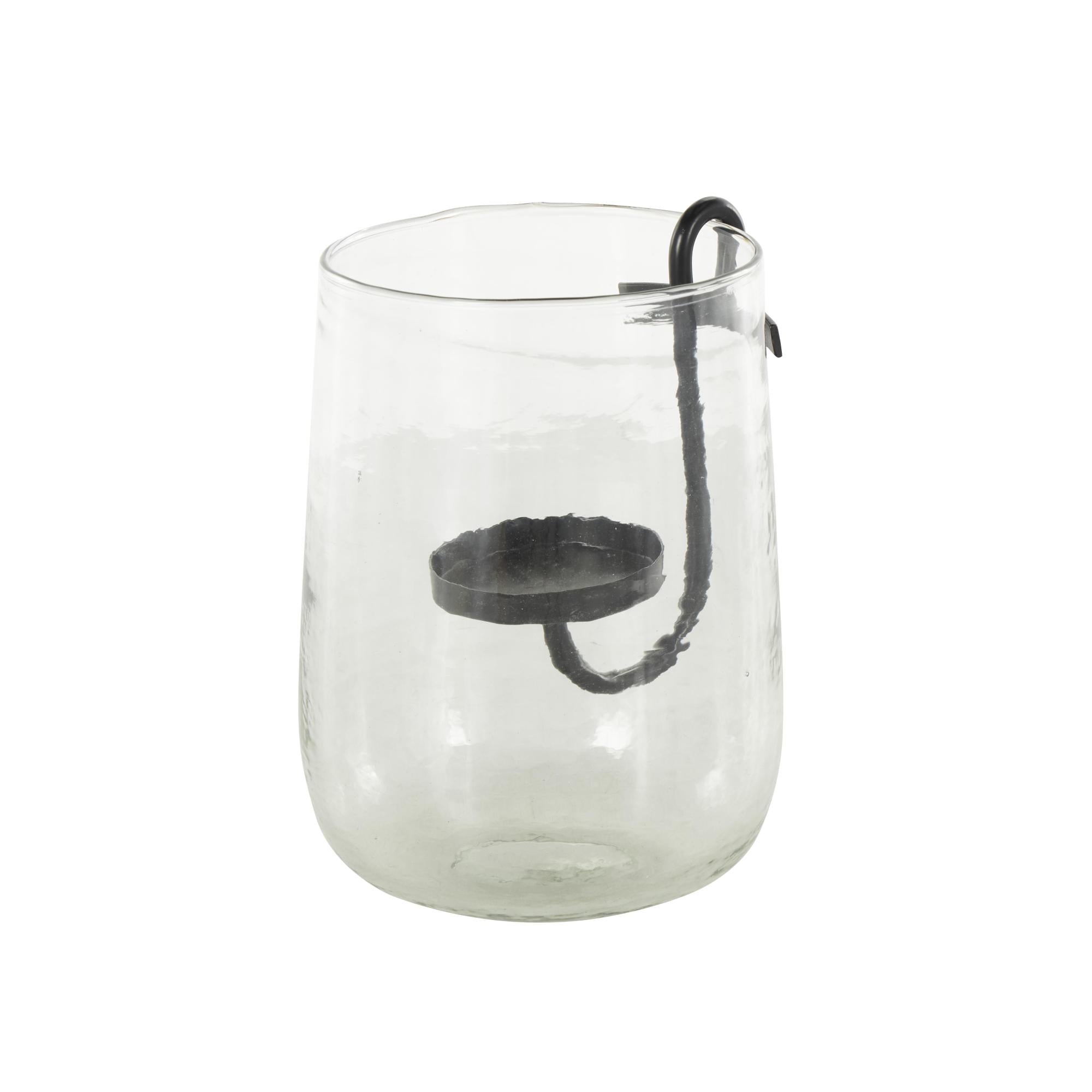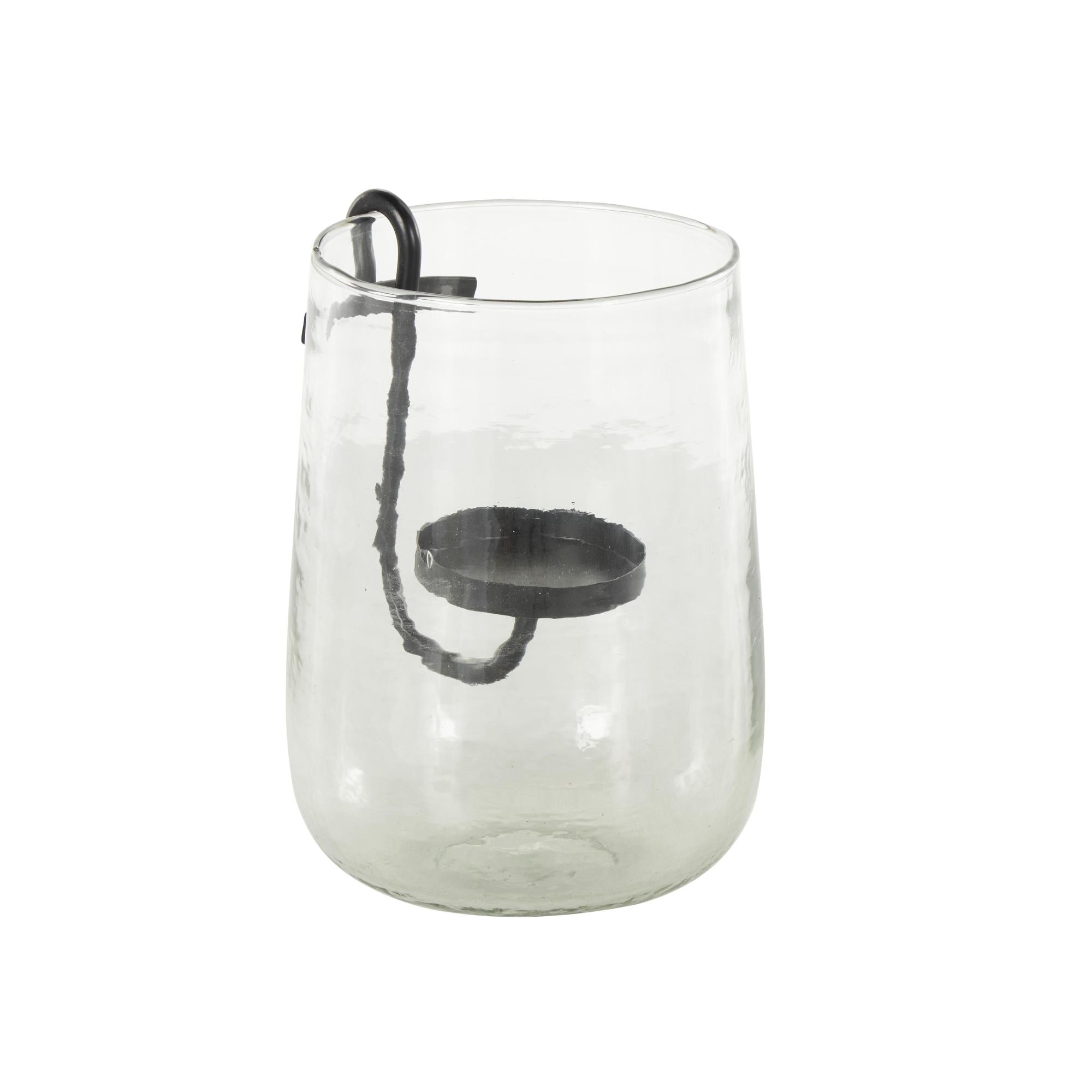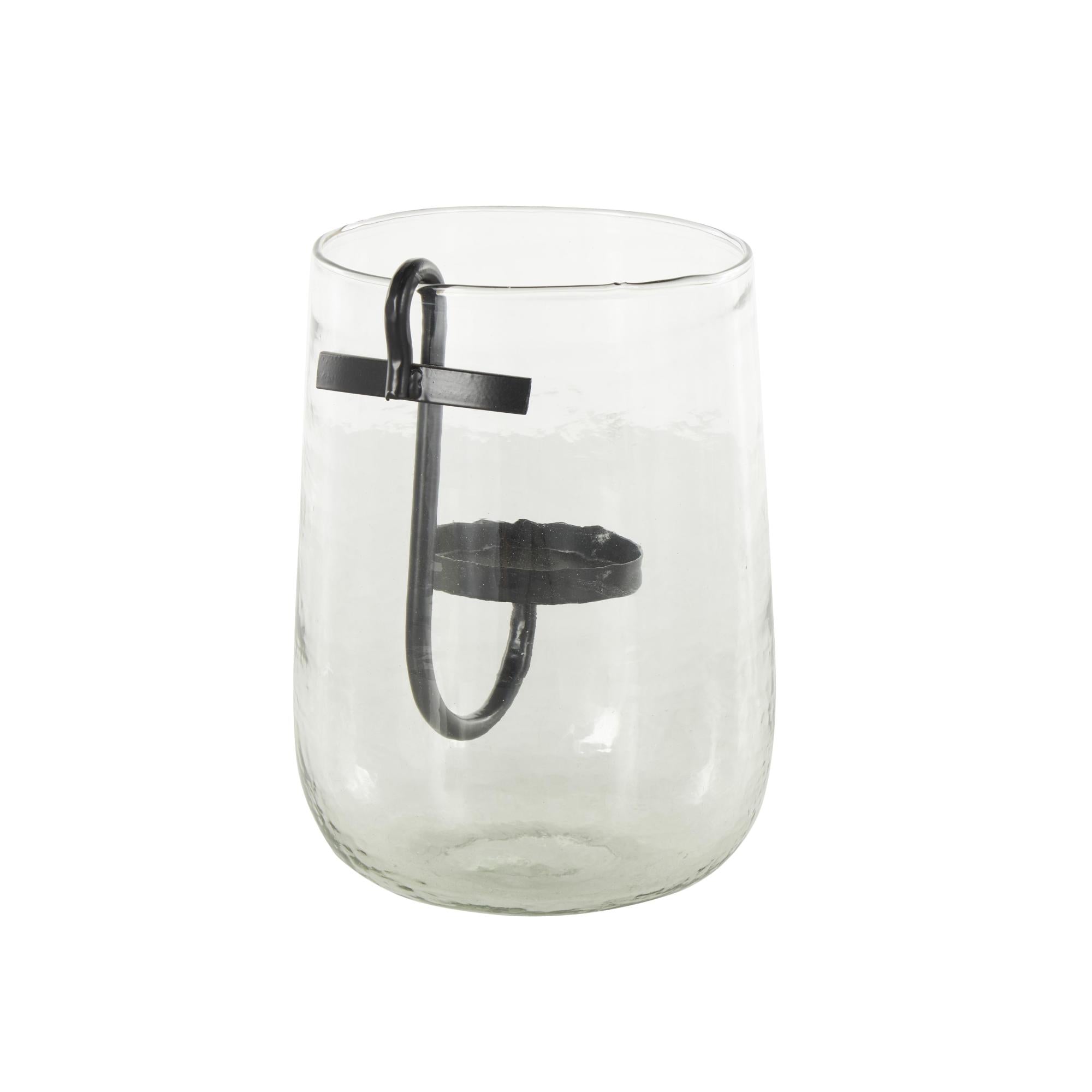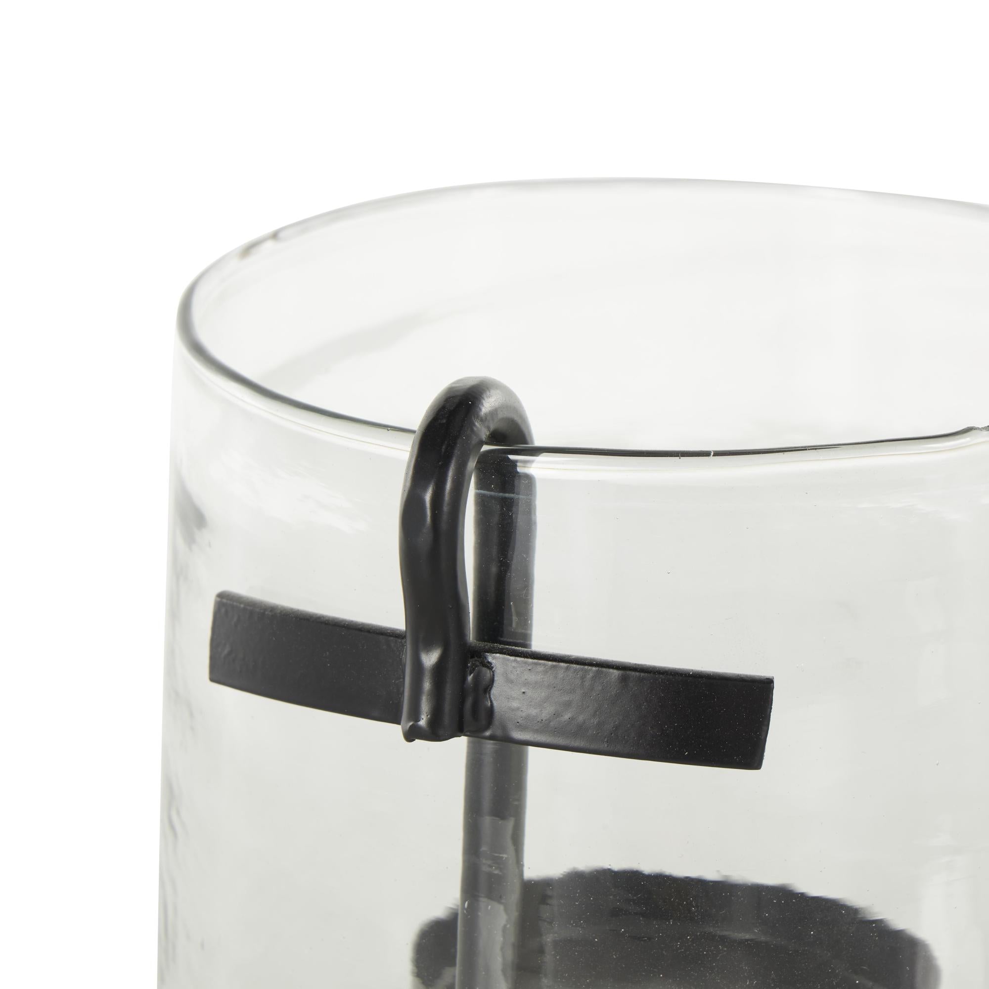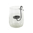 Clear Glass Decorative Candle Holder with Black Metal Accents