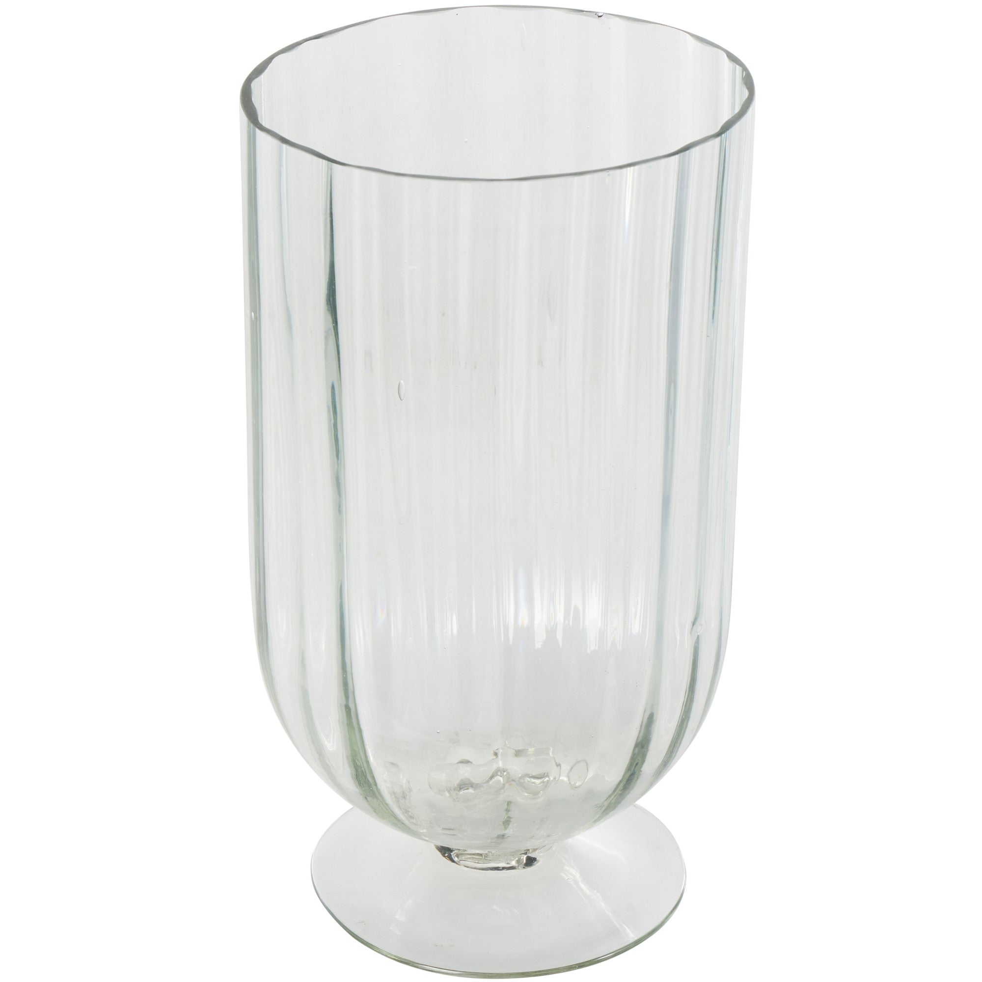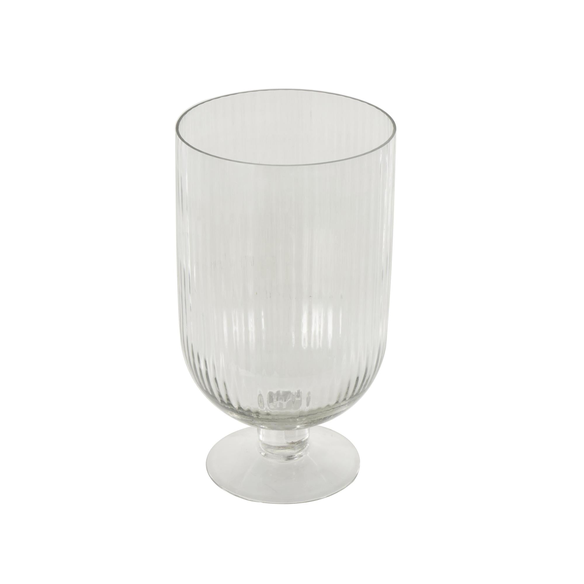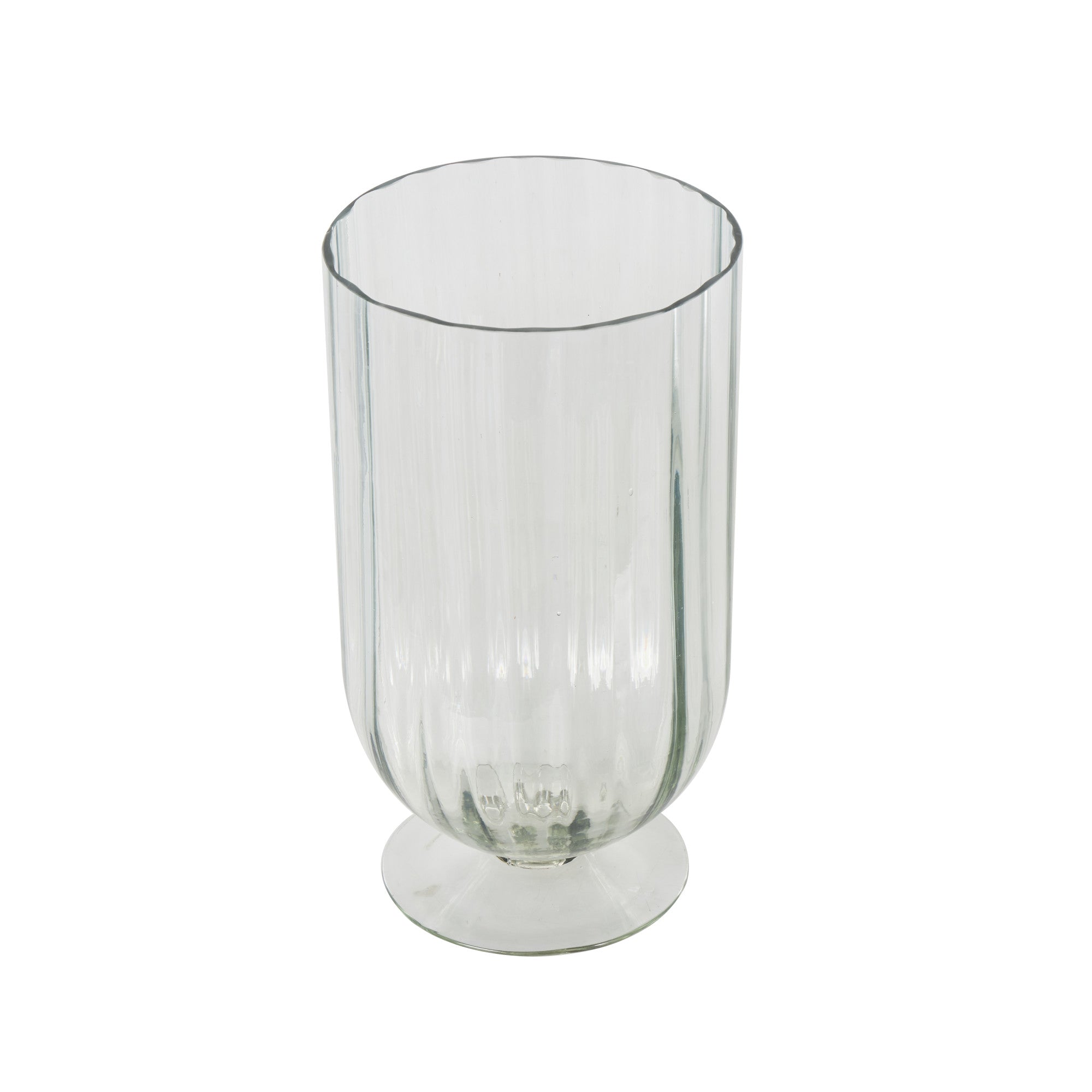 Glass Ribbed Fluted Decorative Candle Holder with Elevated Base 6" x 6" x 11"
