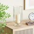 This candle stand is versatile enough to enhance any room's decor, be it your living room, dining area, or bedroom. Designed with felt or rubber stoppers at the base that prevent scratching furniture and table tops, as well as sliding around. Can hold 1 pillar candle, not included. This item ships in 1 carton. Glass candle holder makes a great gift for any occasion. Suitable for indoor use only. This item ships fully assembled in one piece. Made in India. This is a single hurricane candle holder. Modern style.