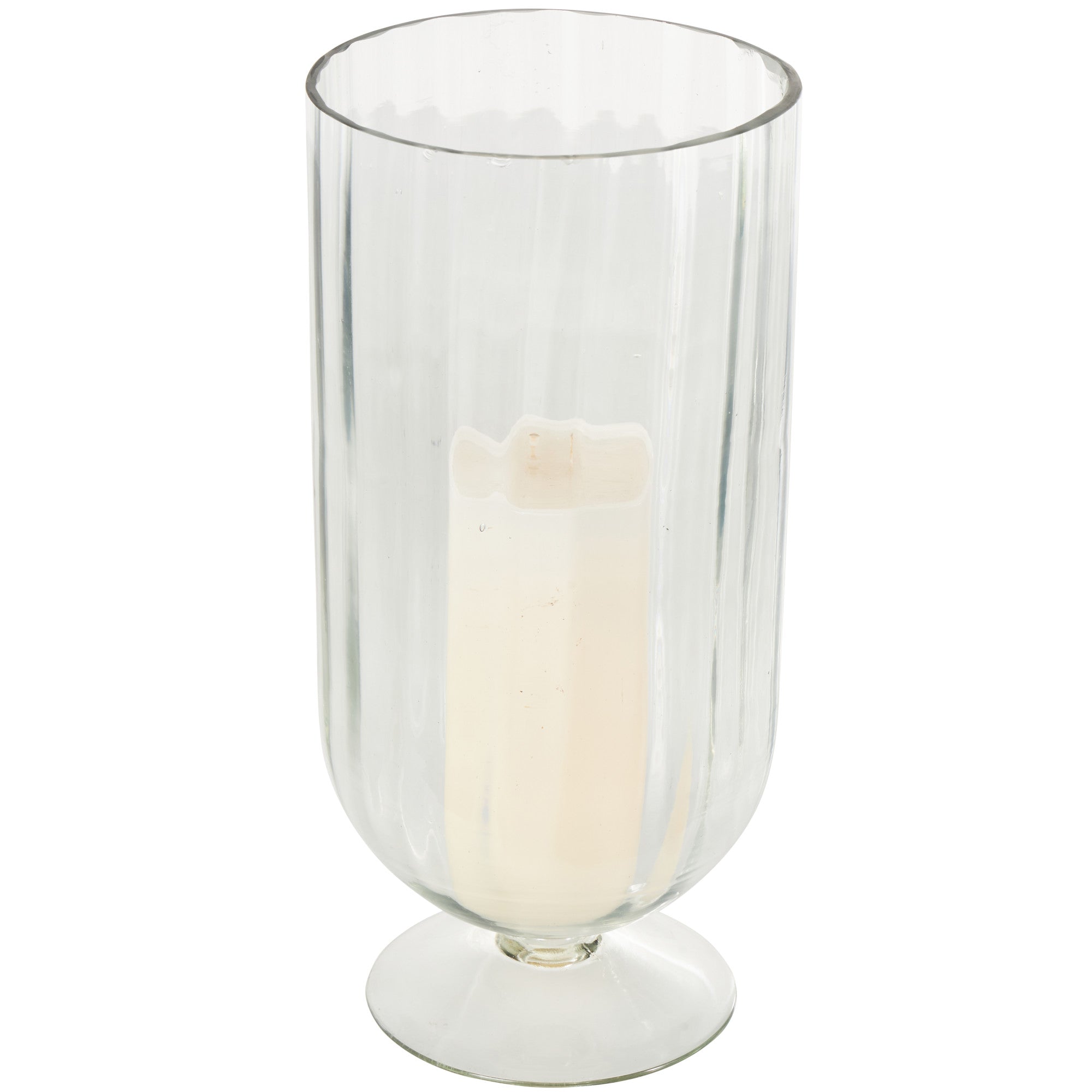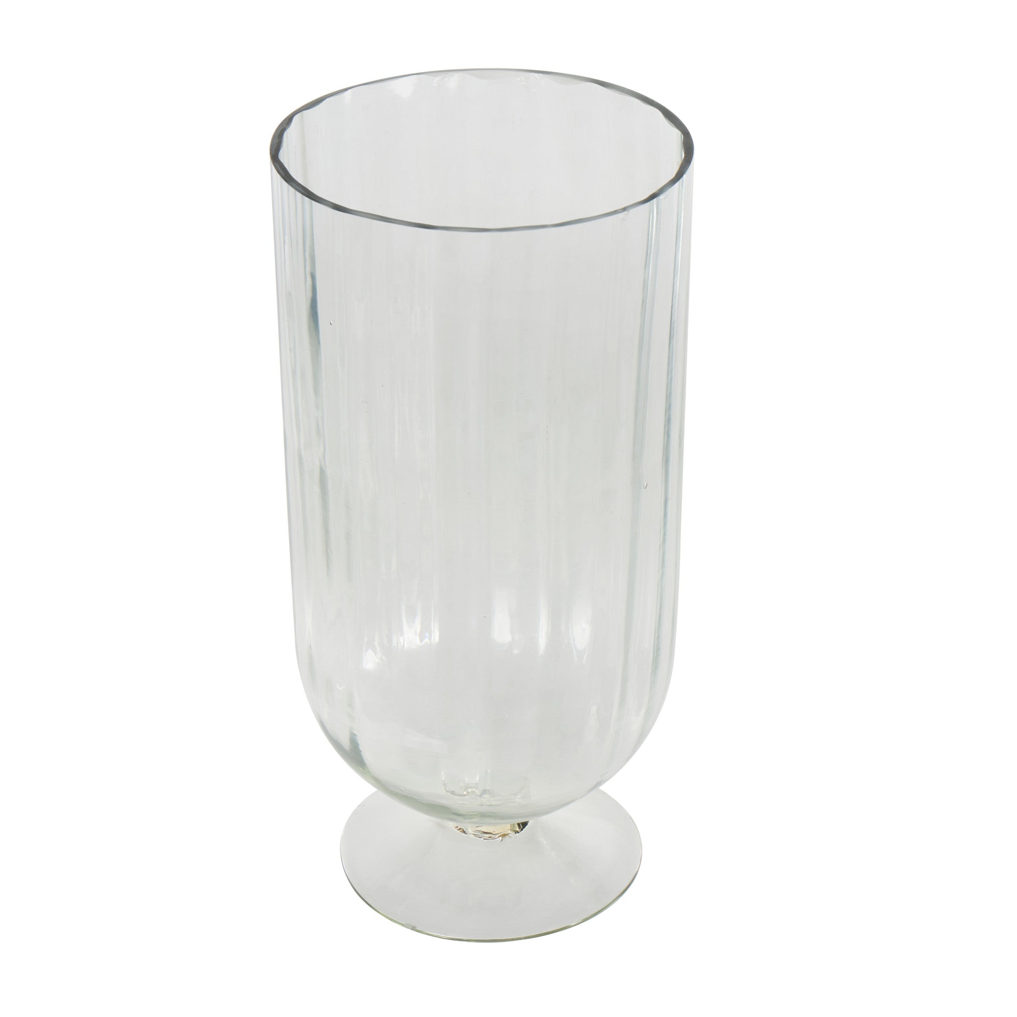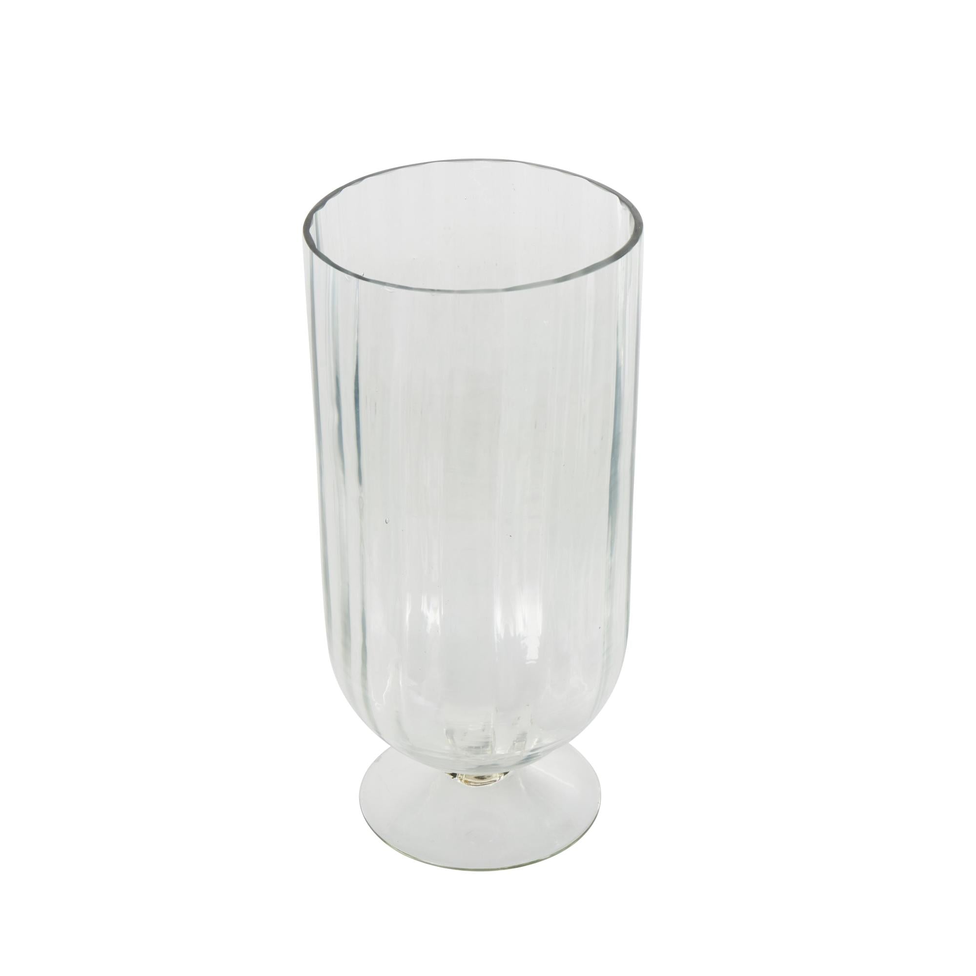 Glass Ribbed Fluted Decorative Candle Holder with Elevated Base 6" x 6" x 11"