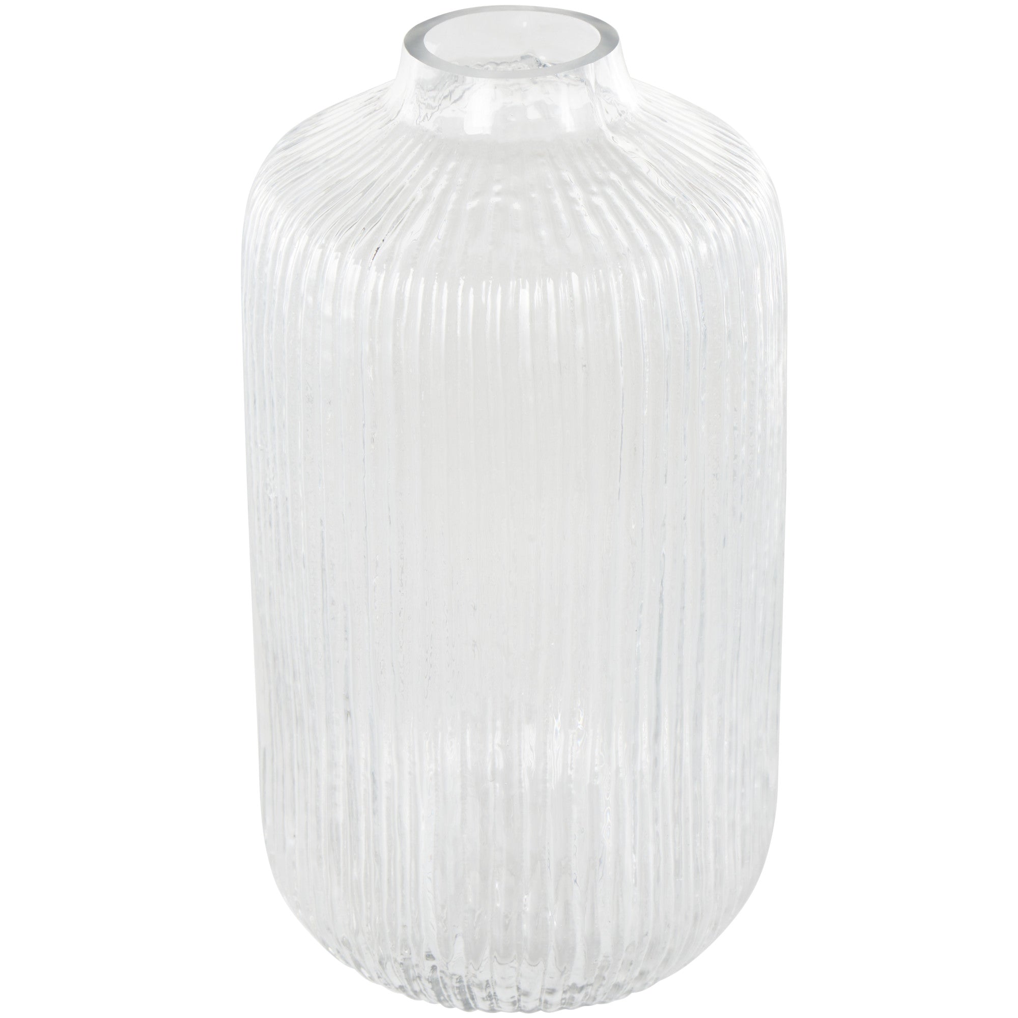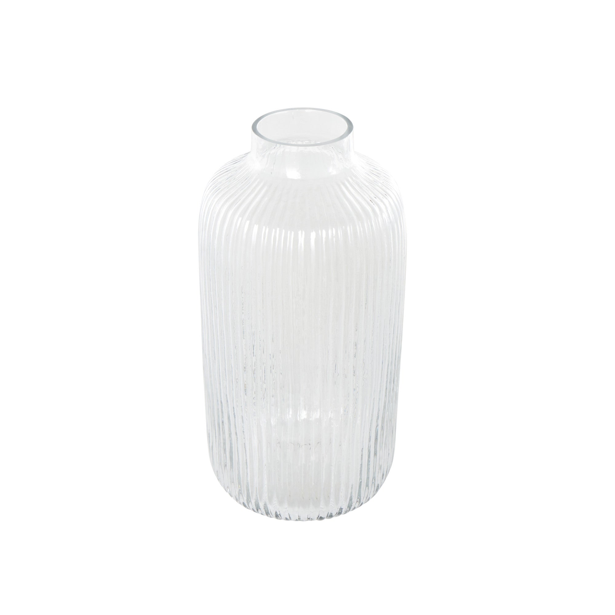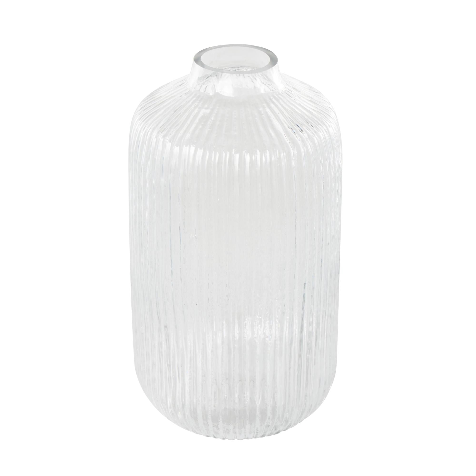 Clear Glass Ribbed Fluted Decorative Vase