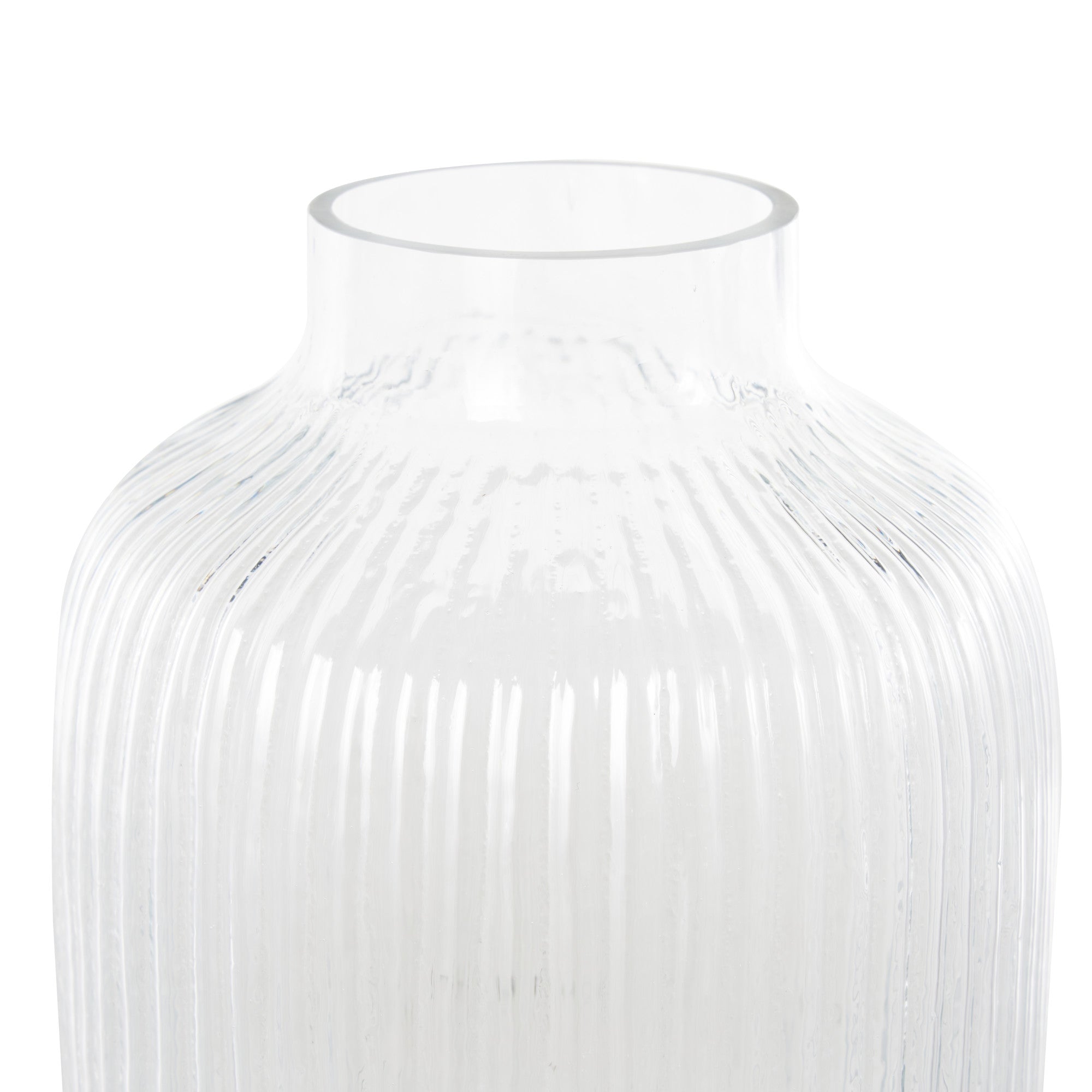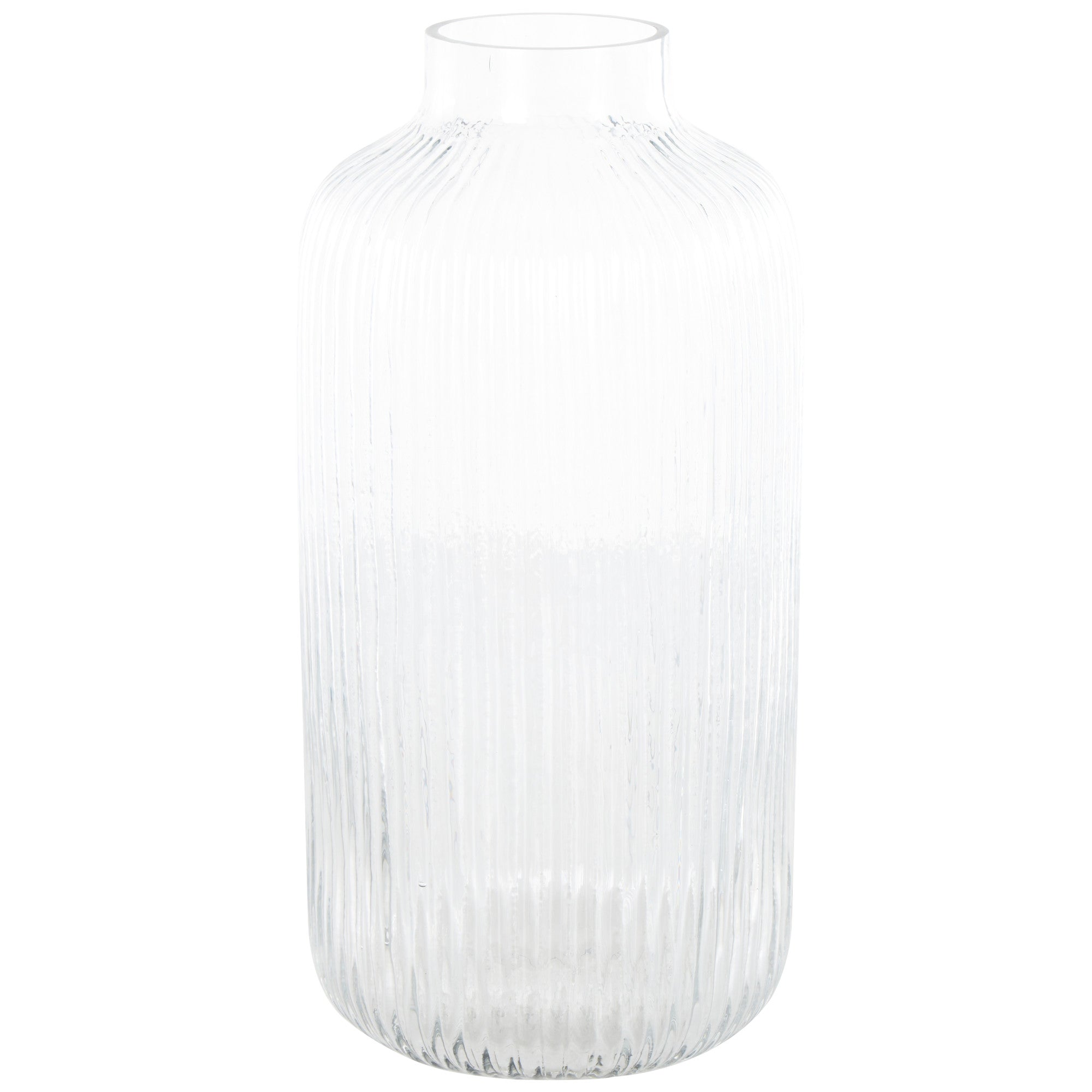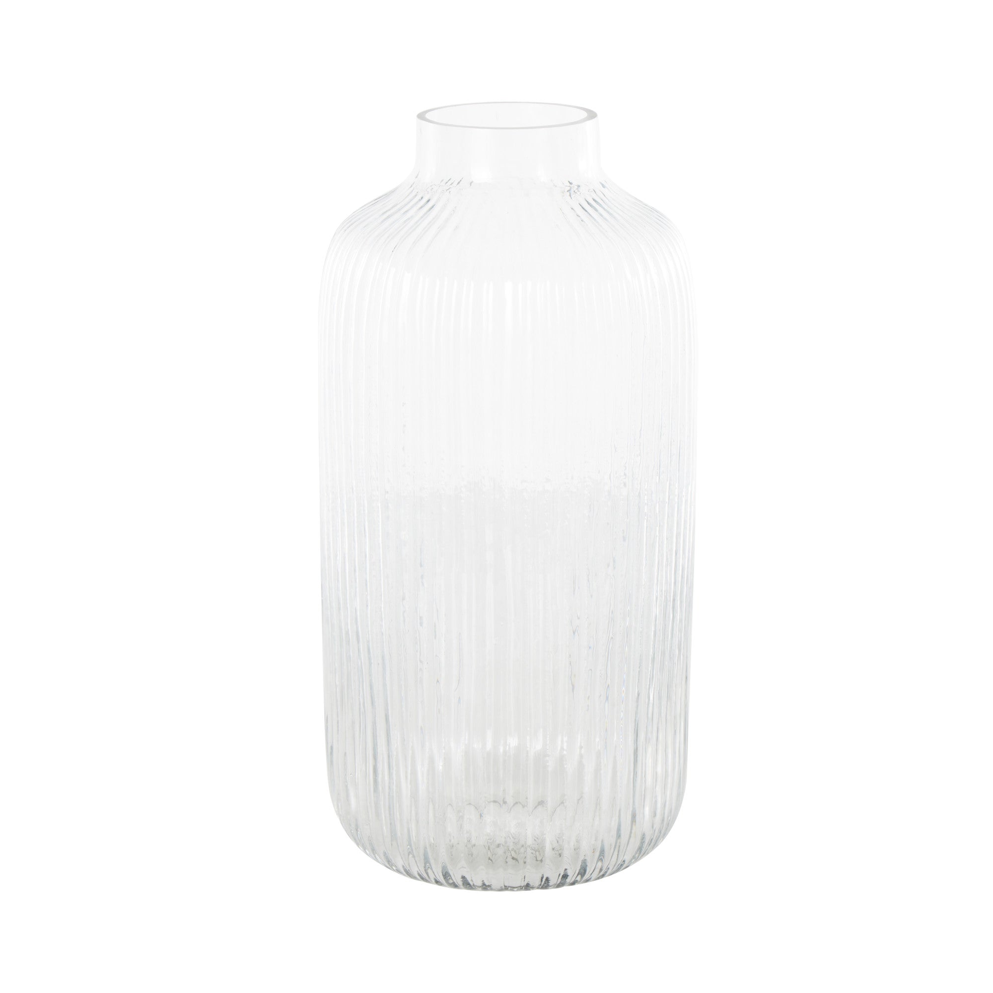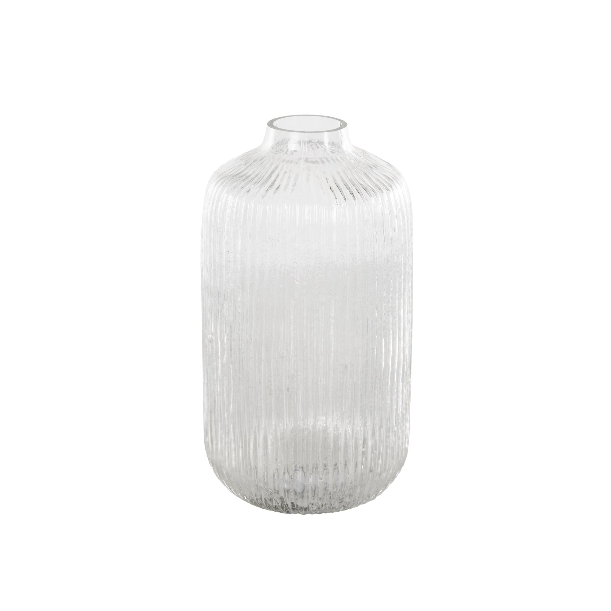 Clear Glass Ribbed Fluted Decorative Vase