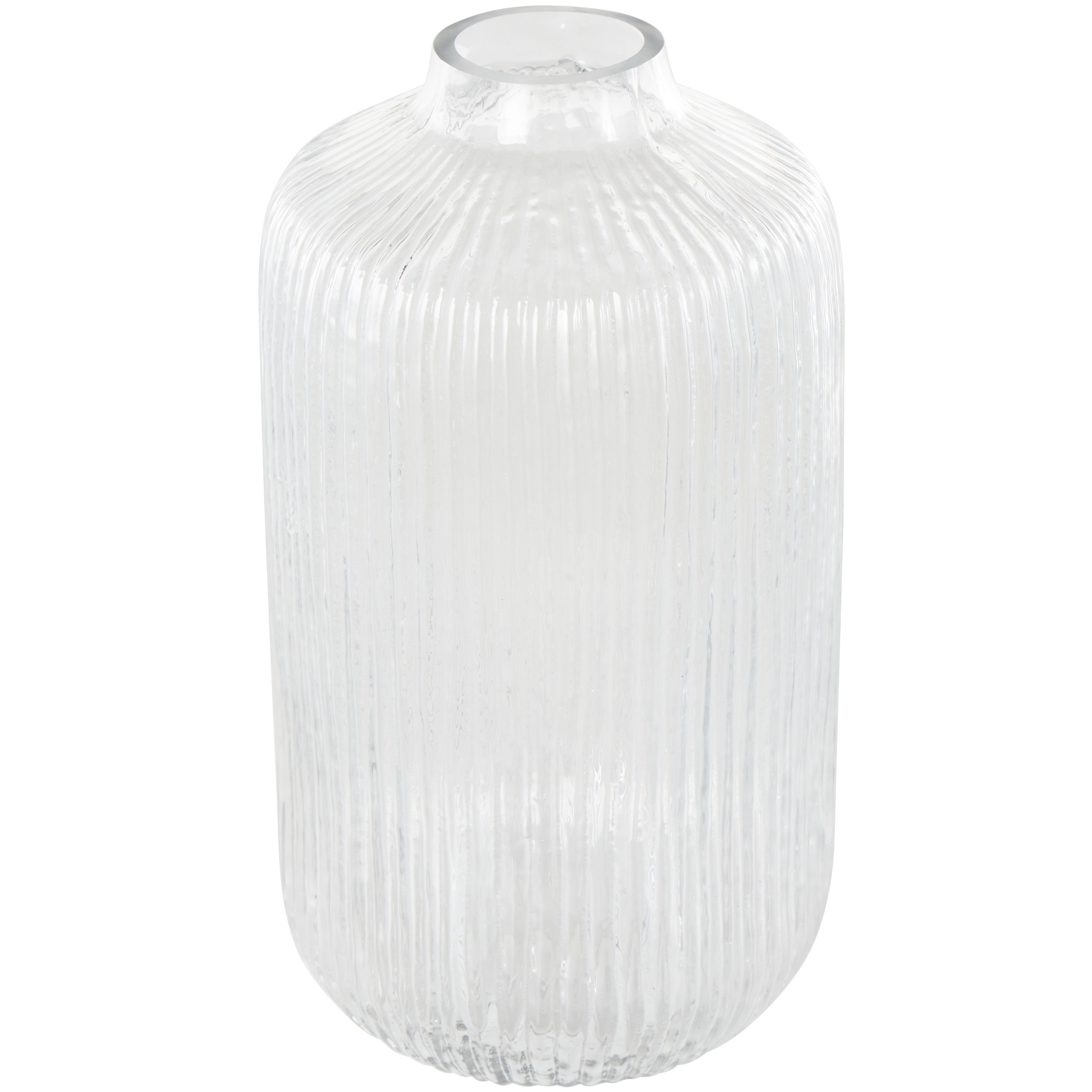 •This glass vase features an attractive ribbed design that adds texture and visual interest
