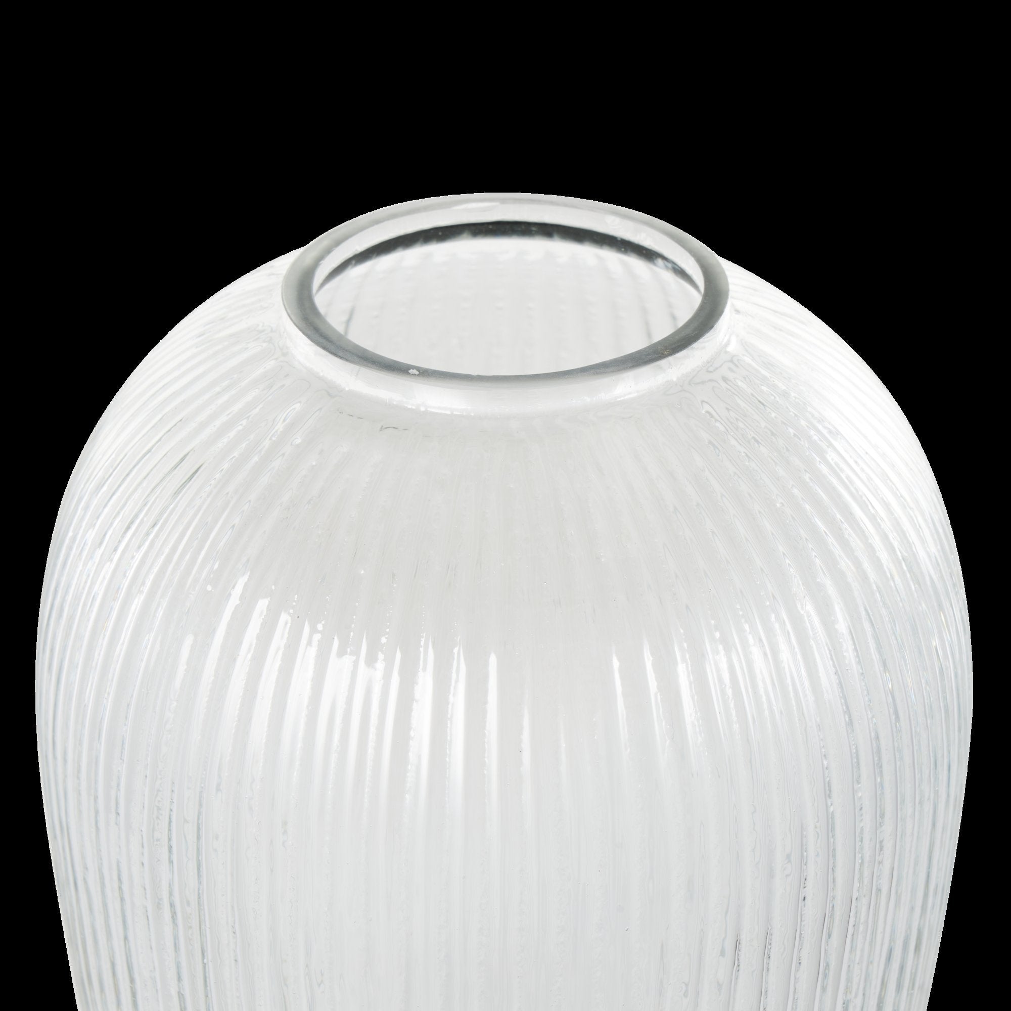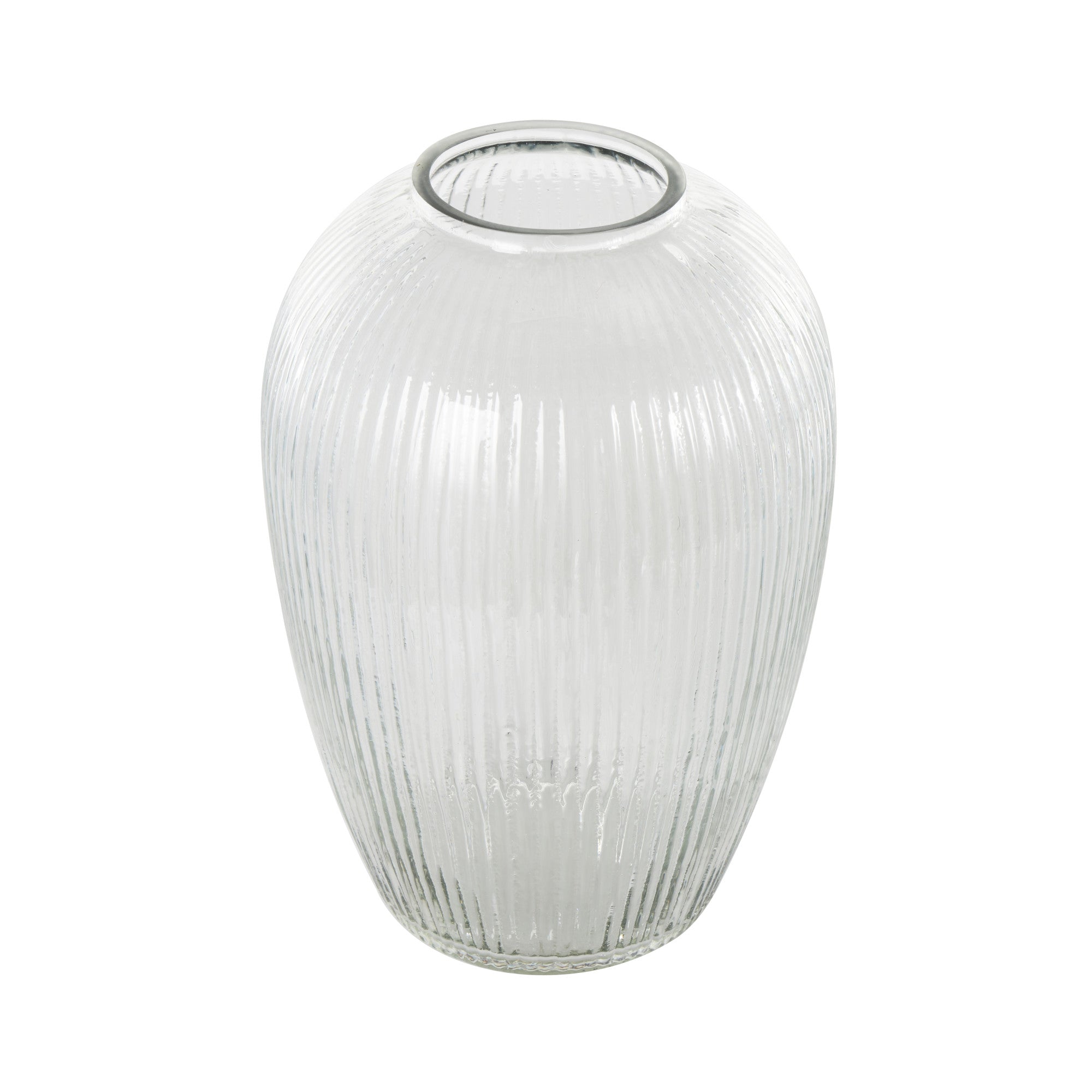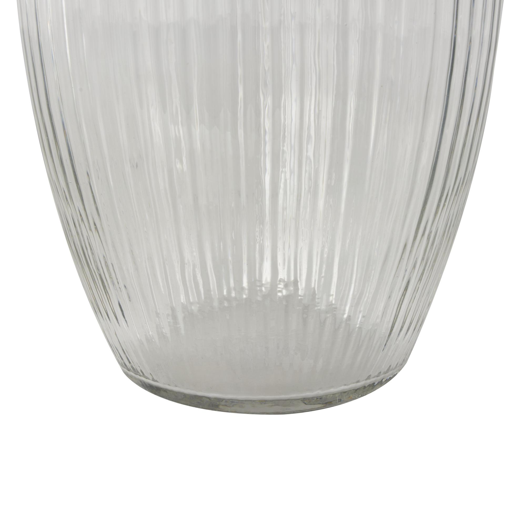 •This glass vase features an attractive ribbed design that adds texture and visual interest