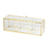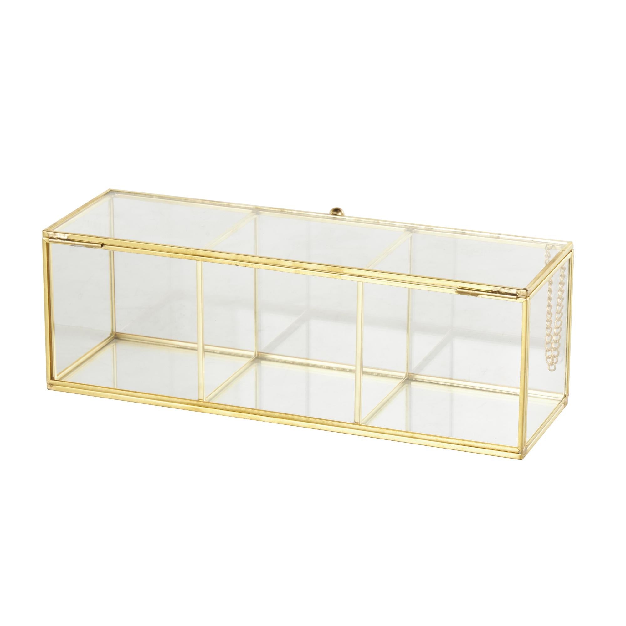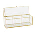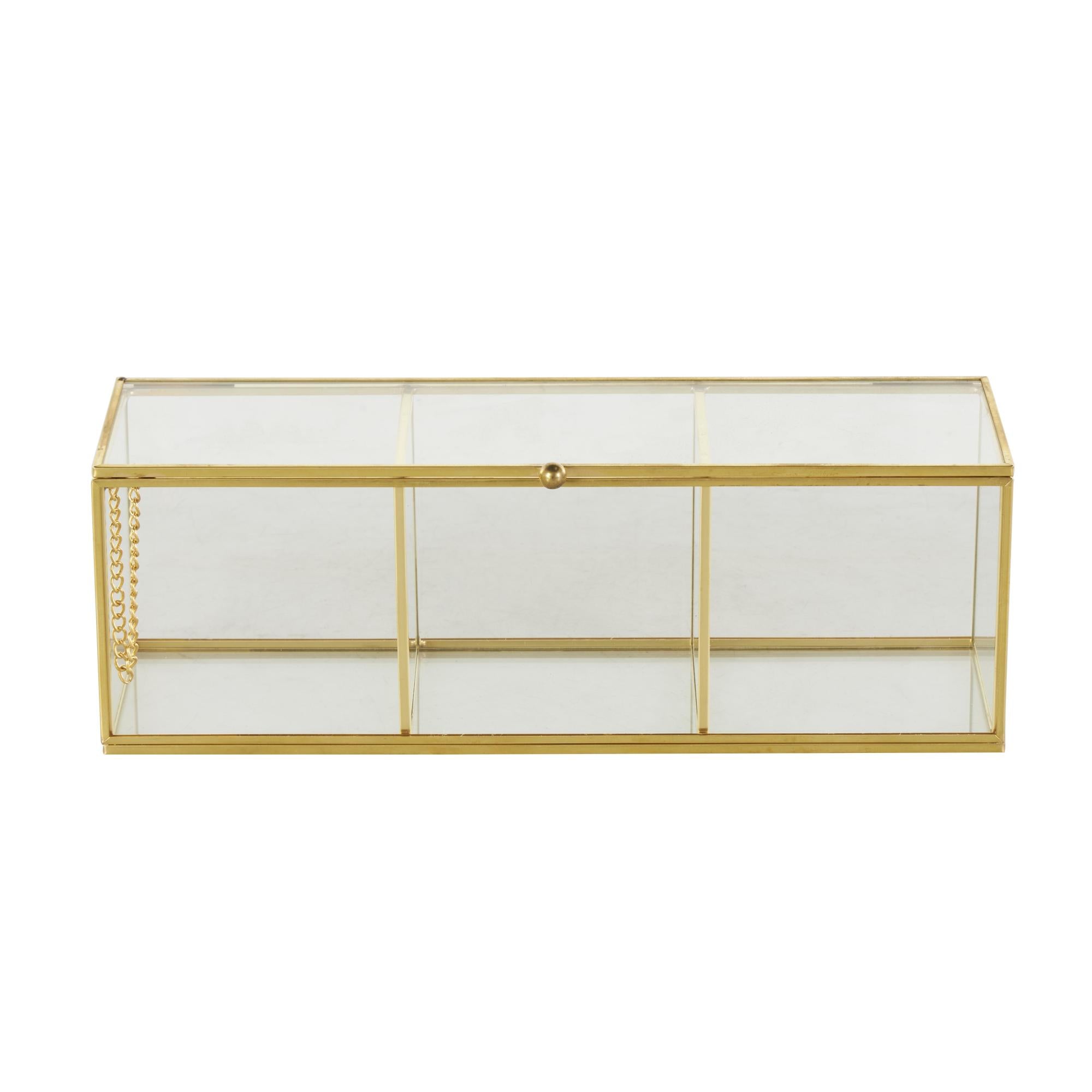 Clear Glass Slim Rectangular 3 Slot Decorative Jewelry Box with Gold Metal Frame and Chain Accent