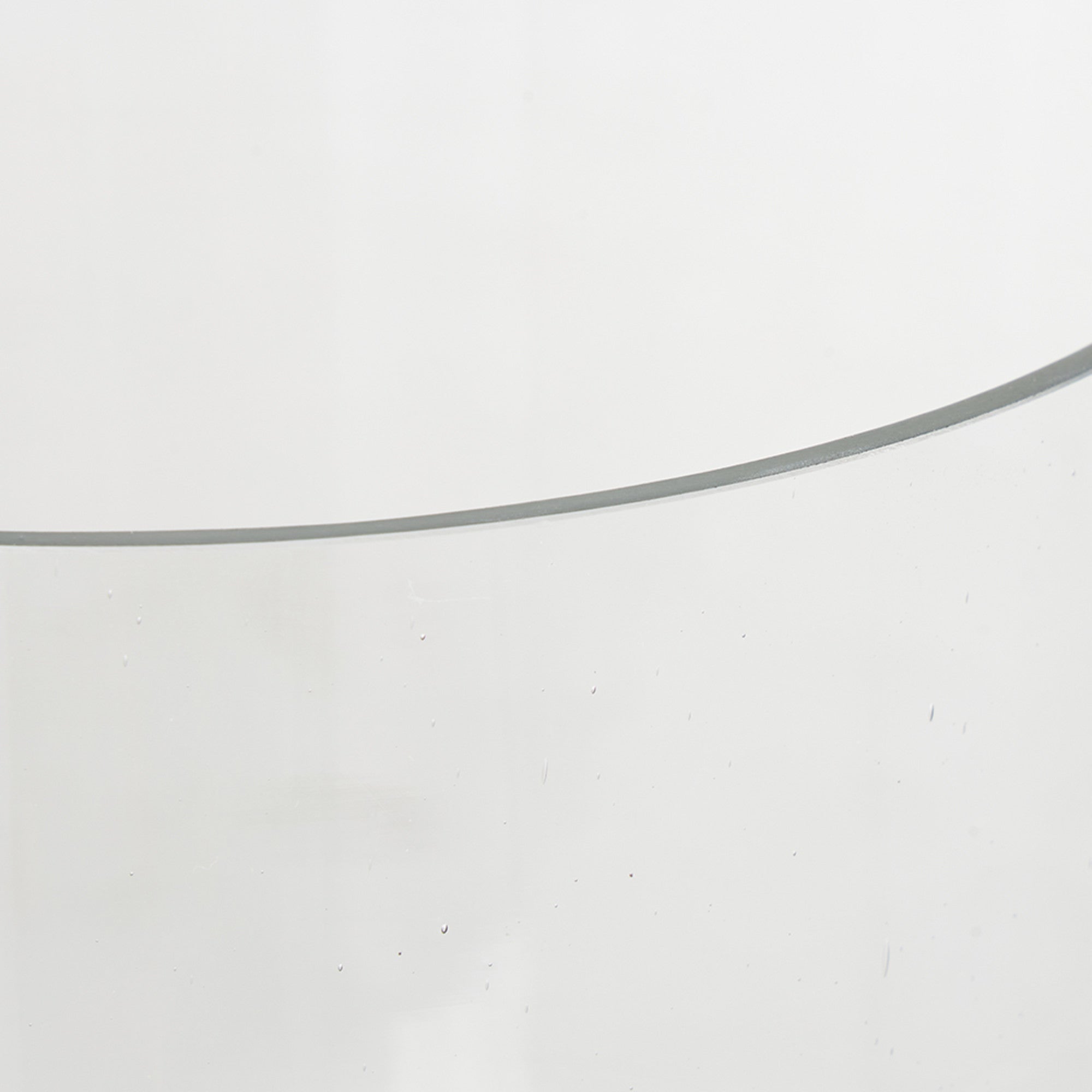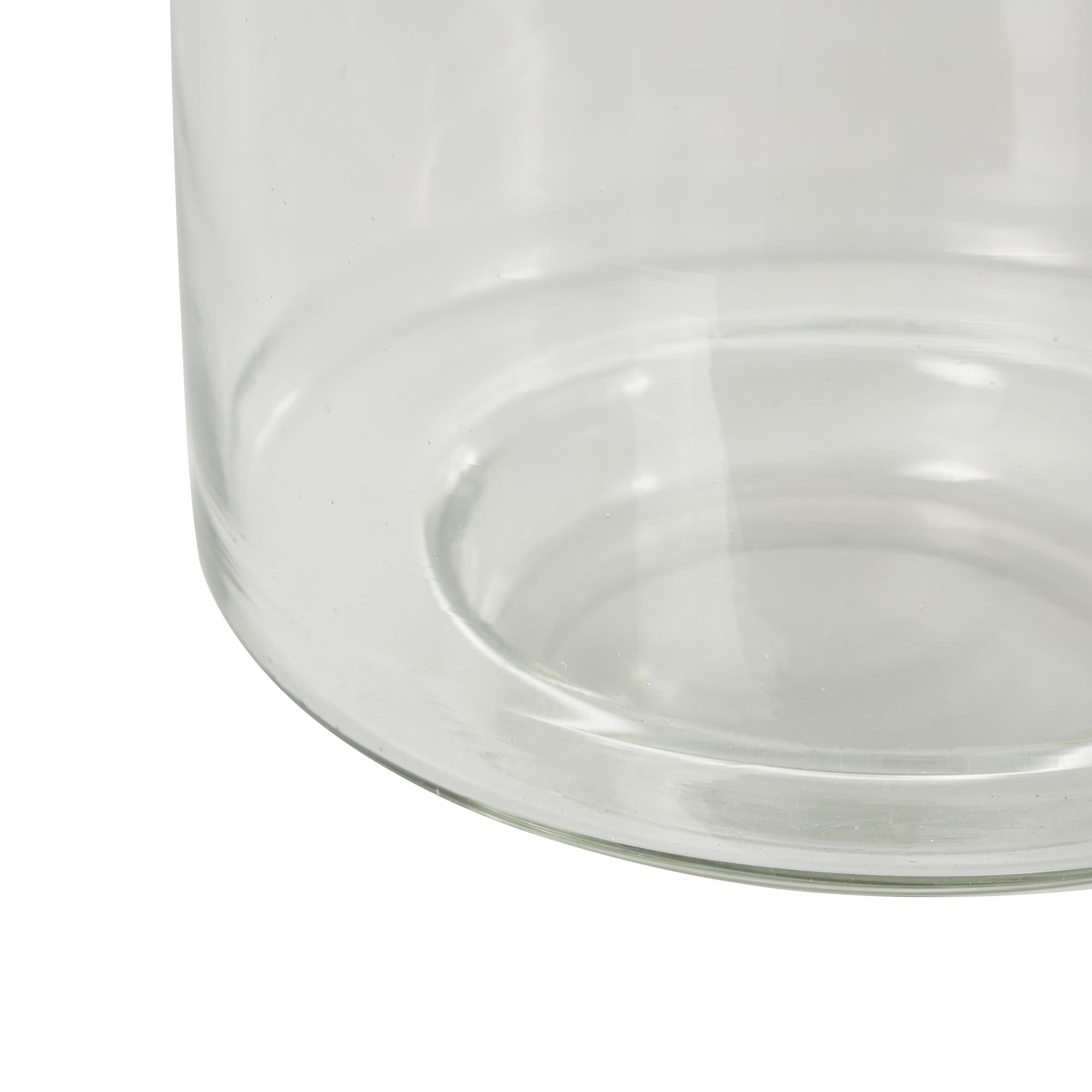 •This glass vase features a minimalistic wide shape that allows for large floral arrangements