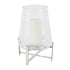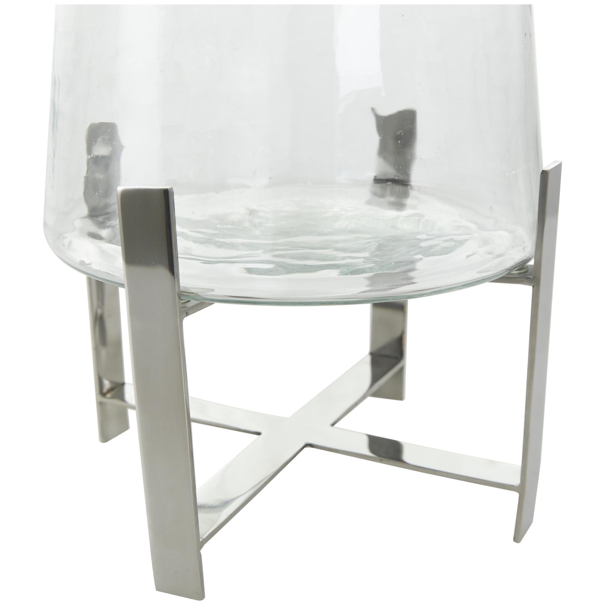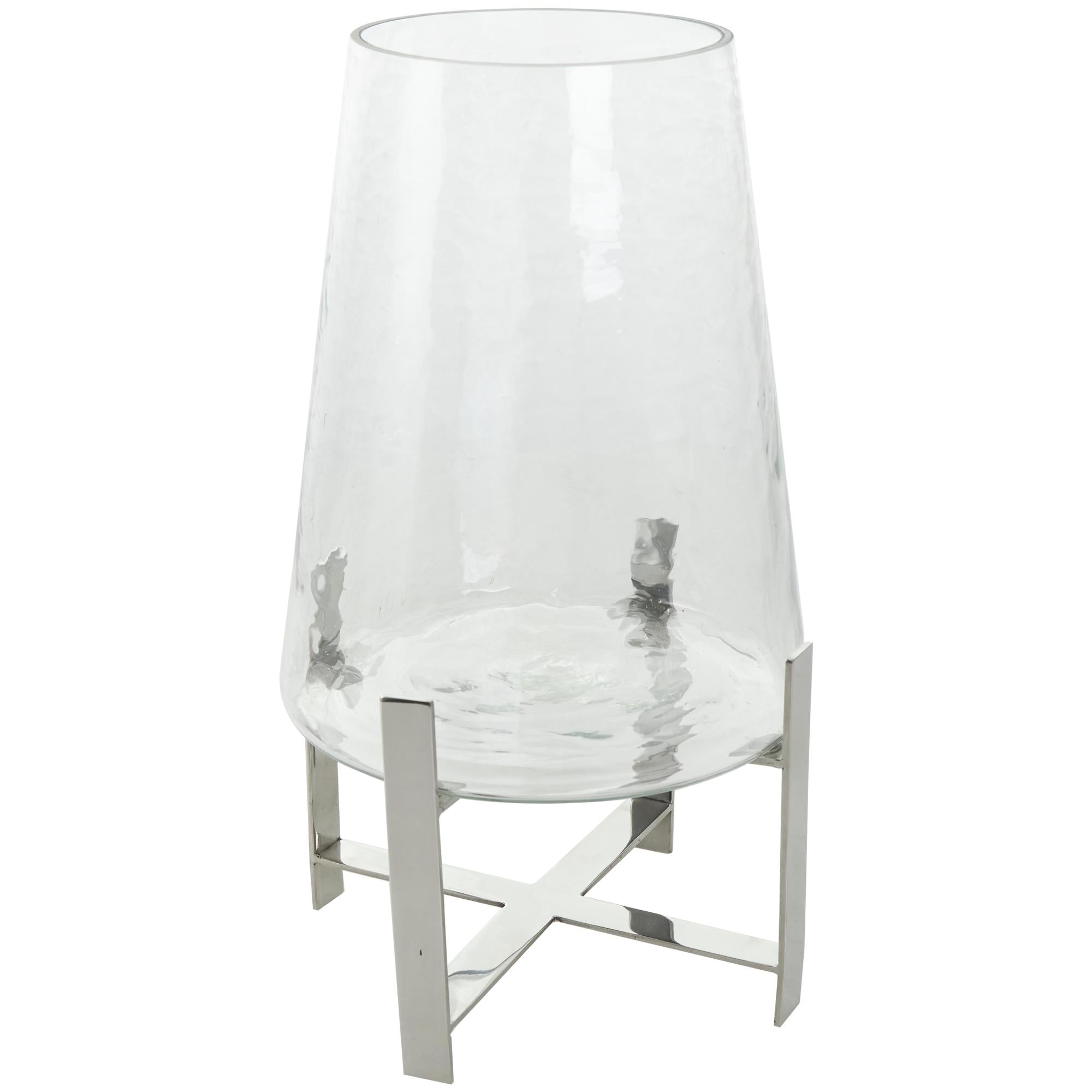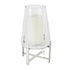 Clear Stainless Steel Metal Room Hurricane Lamp with Stainless Steel X Shaped Base