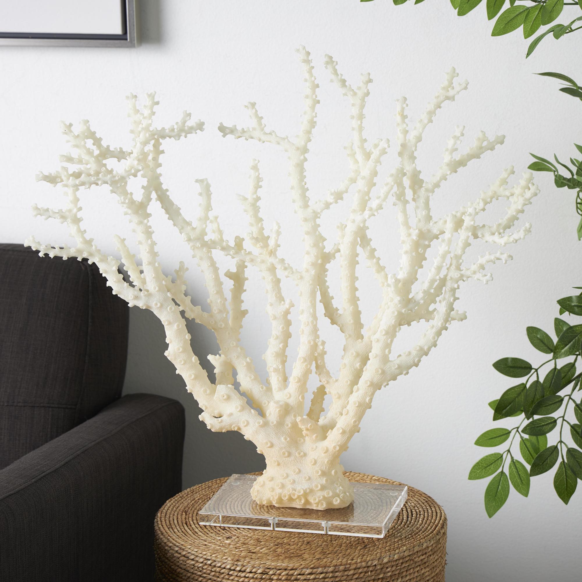 Coral Cream Polystone Decorative Sculpture with Clear Acrylic Base