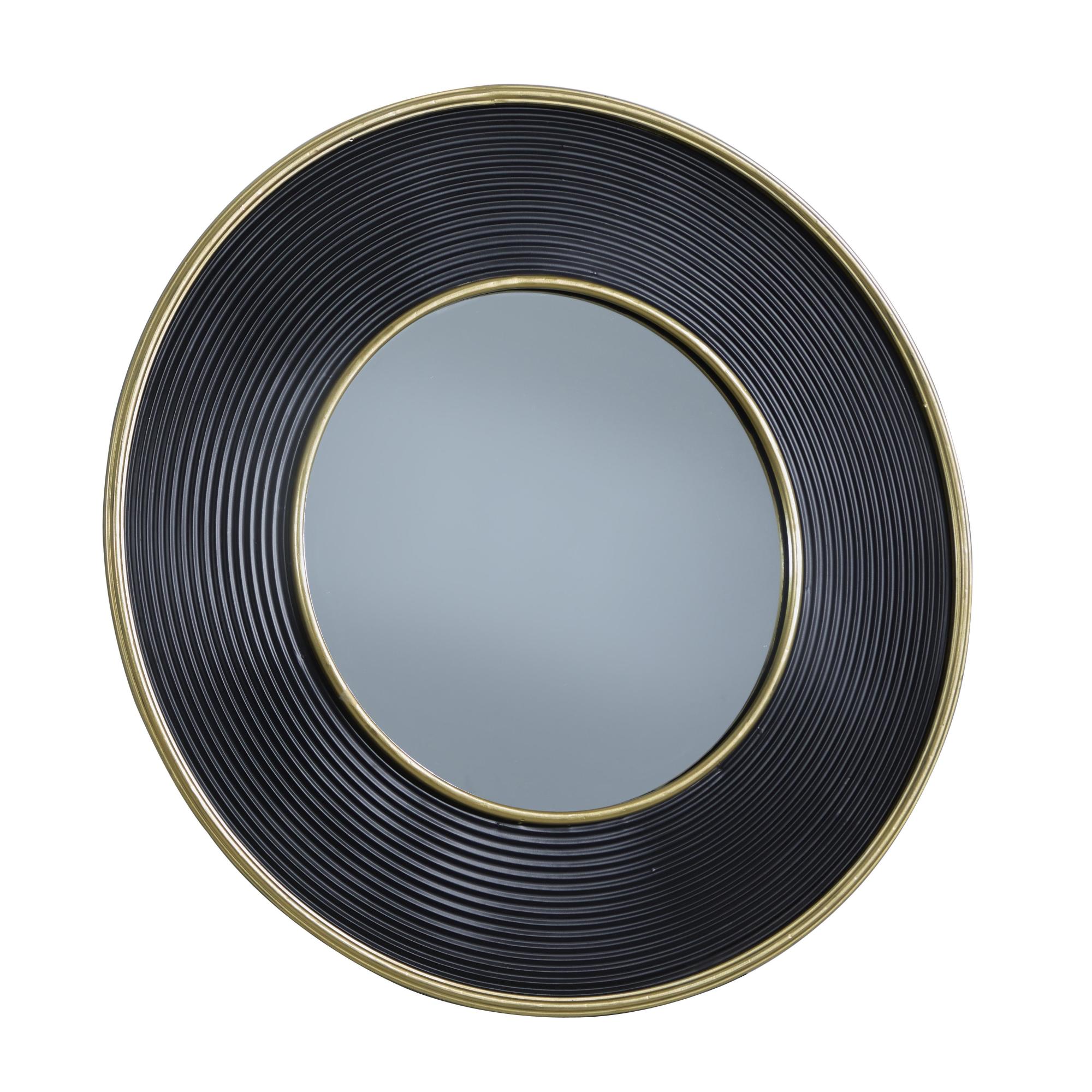 CosmoLiving by Cosmopolitan Black Metal Ribbed Room Wall Mirror with Gold Edges