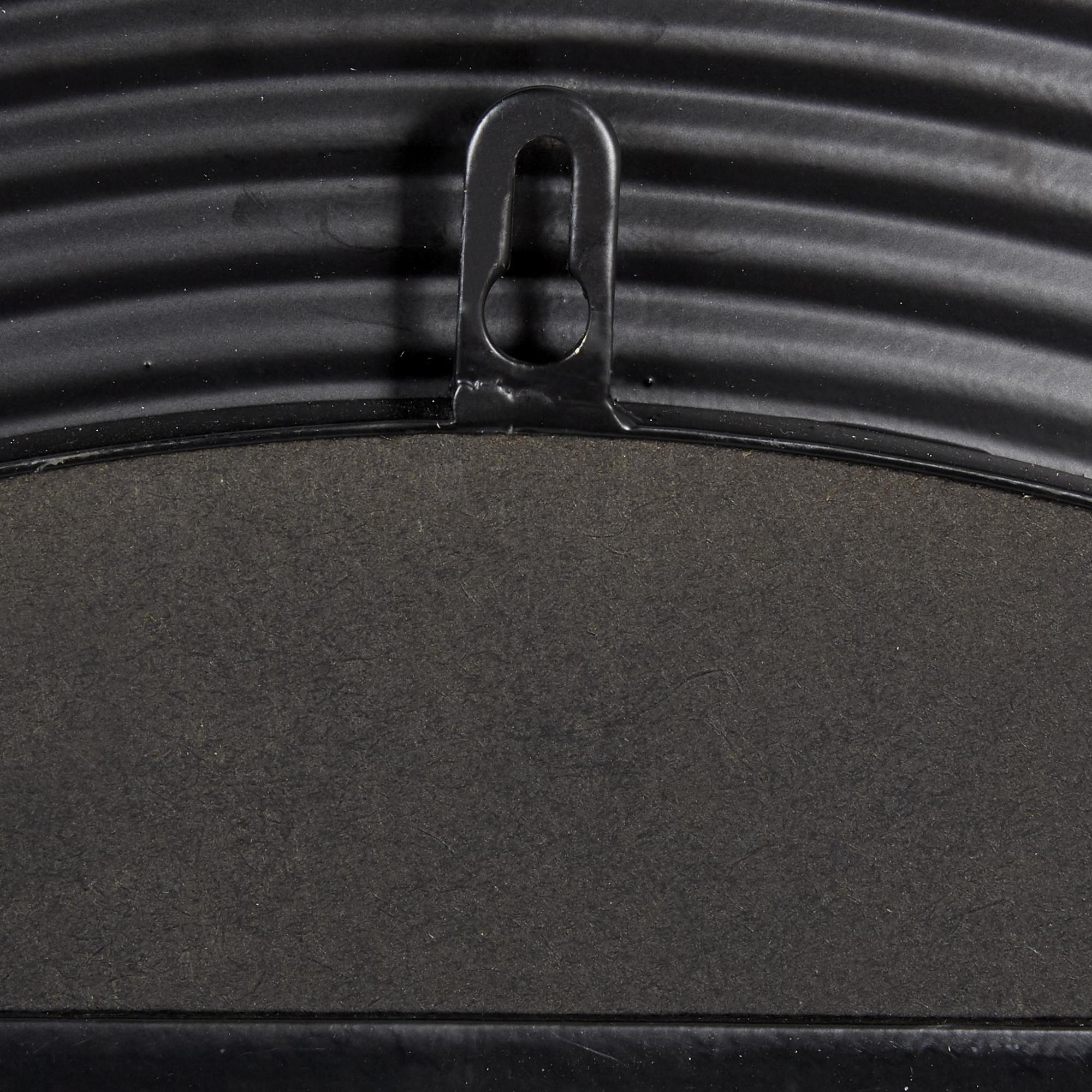 •This metal wall mirror features a ribbed metal frame that is tapered on its edge