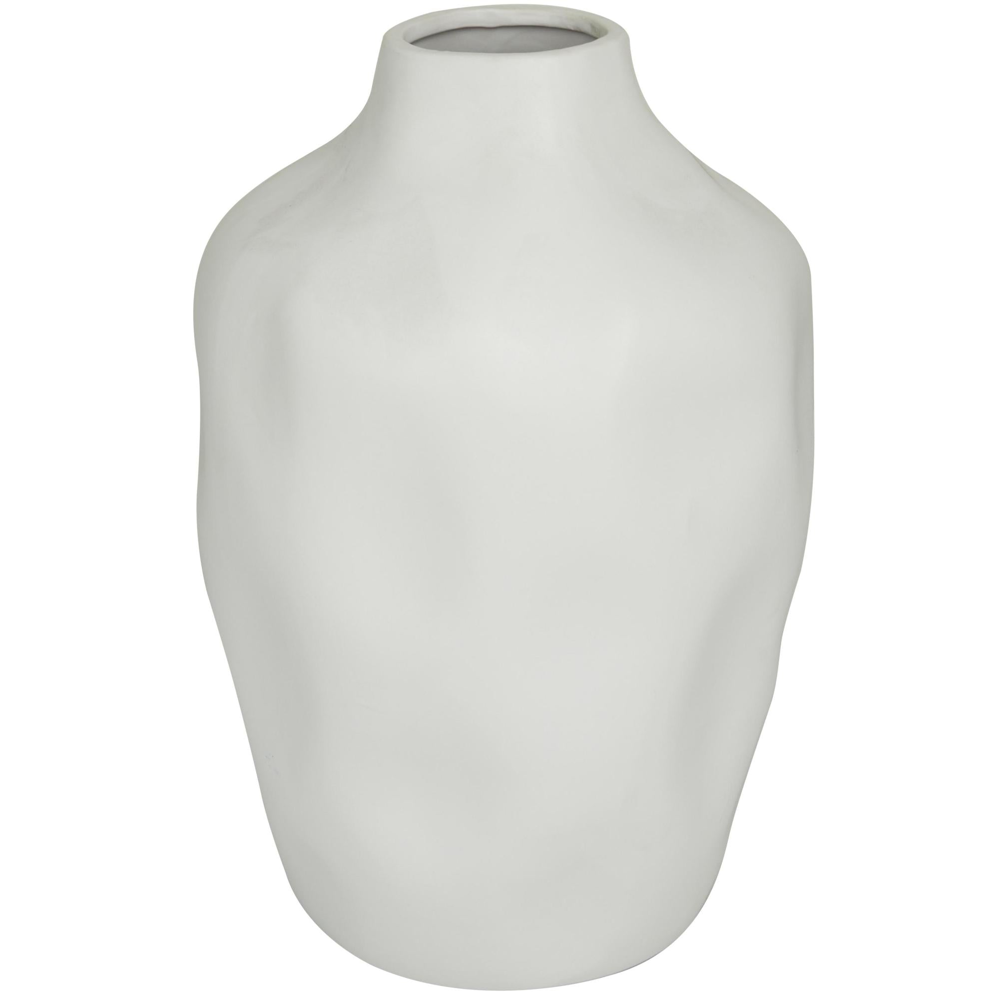 •This matte vase for dried flowers has a round shape with a faceted exterior