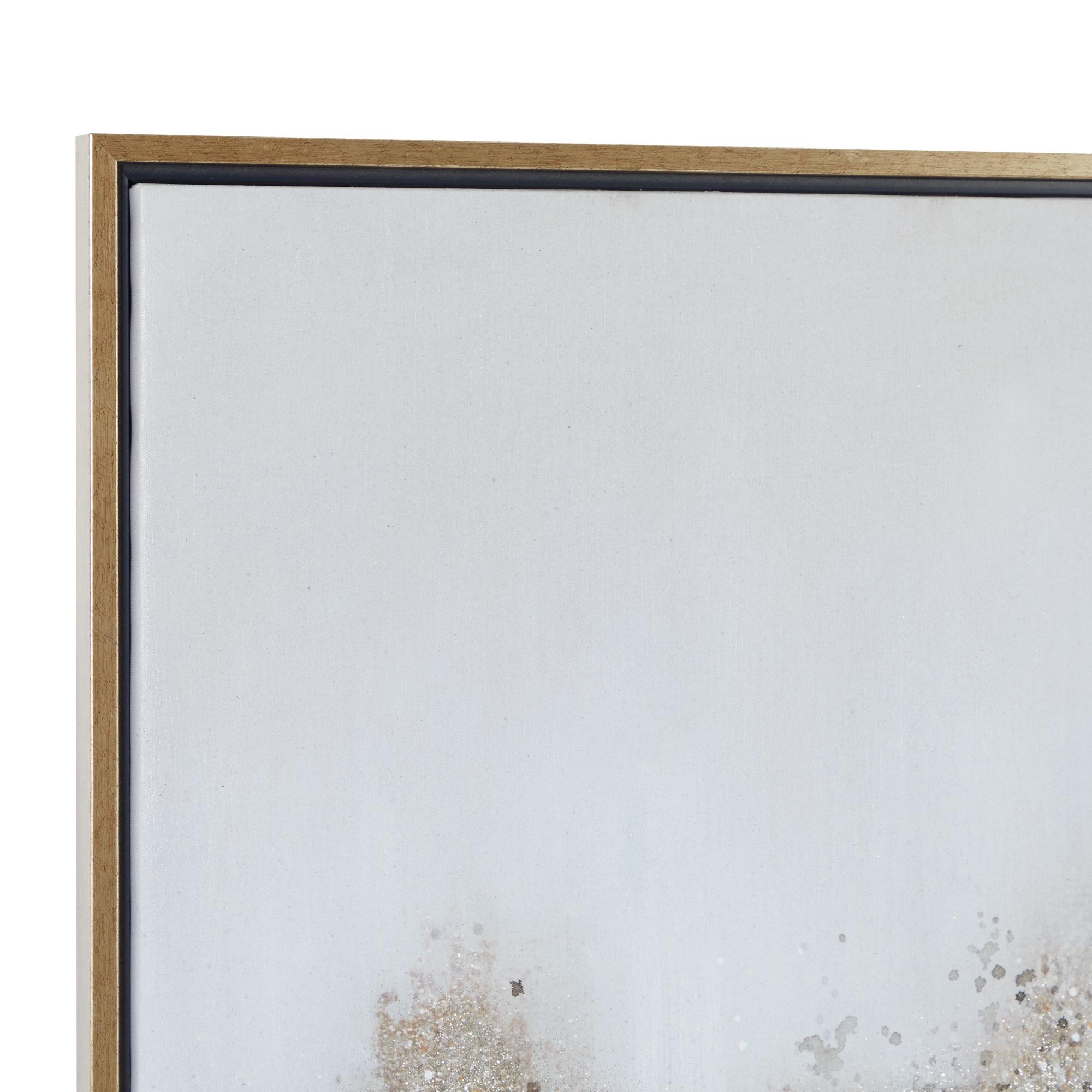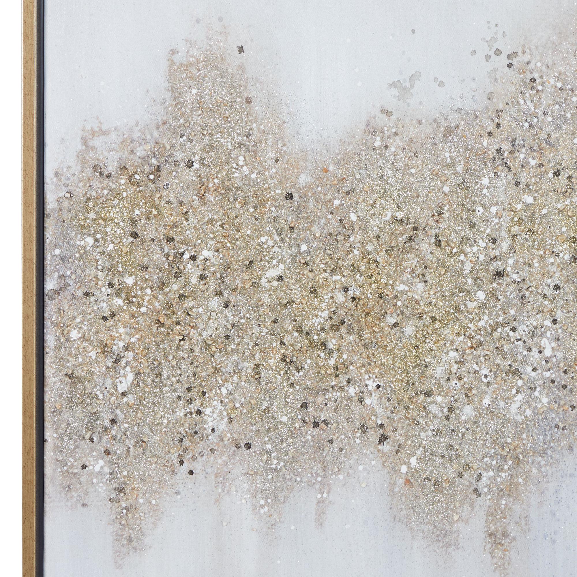 •The textured wall framed art accentuates a vertical rectangular frame with abstract designs and glitter flakes, adding a touch of sparkle to any space