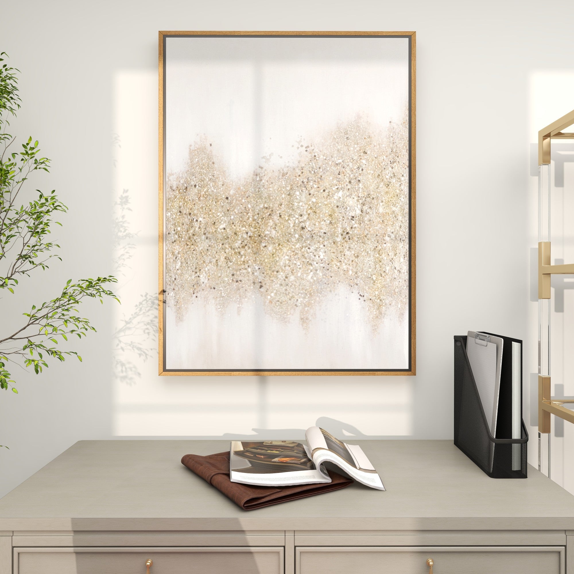 Geode Gold Canvas Glitter Flakes Living Room Framed Wall Art with Gold Frame