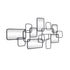 •This metal wall mirror features a rectangular structure with multiple geometric-shaped reflective glasses and metal accents