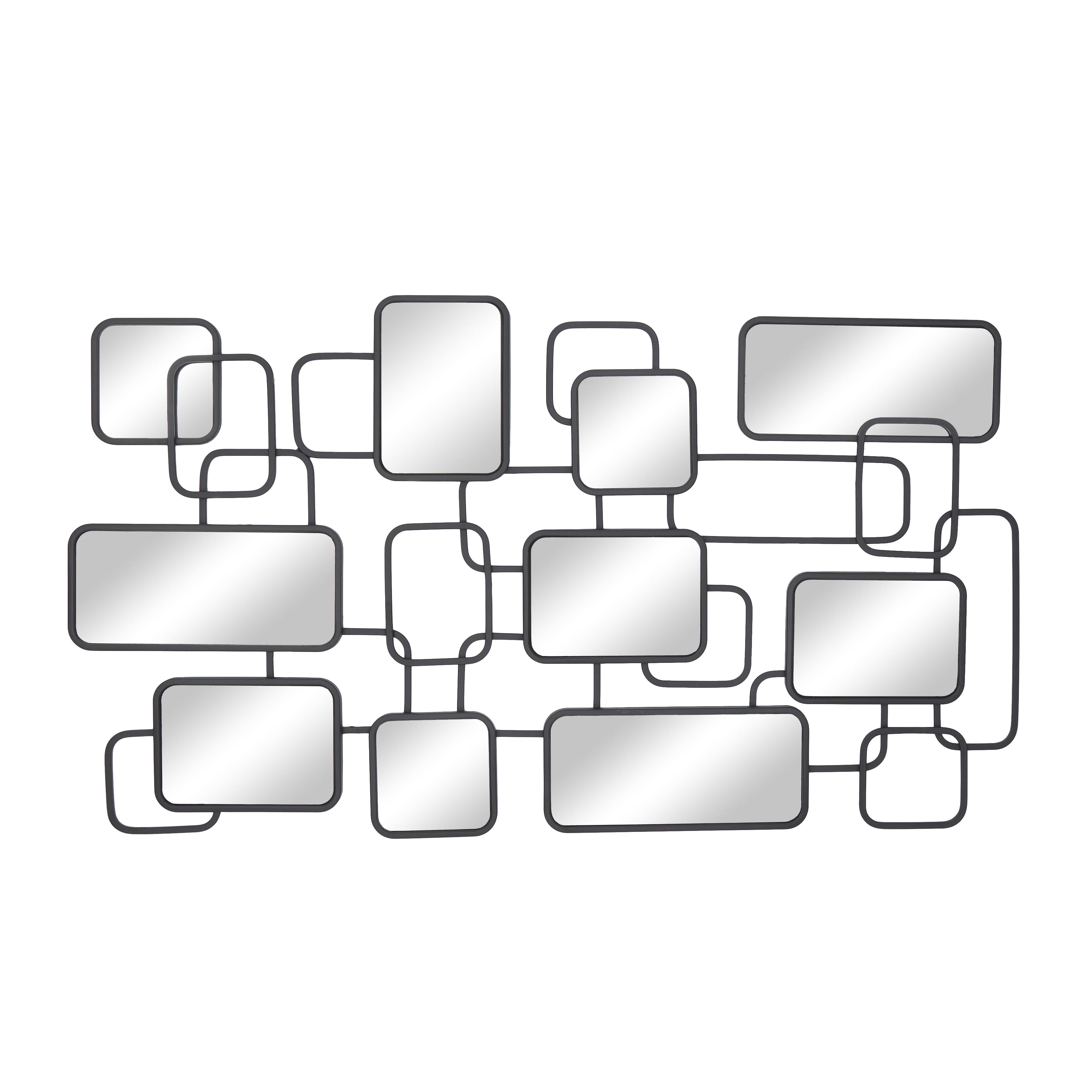 CosmoLiving by Cosmopolitan Geometric Black Metal Overlapping Rectangle Room Wall Mirror with Wire Rod Outlines