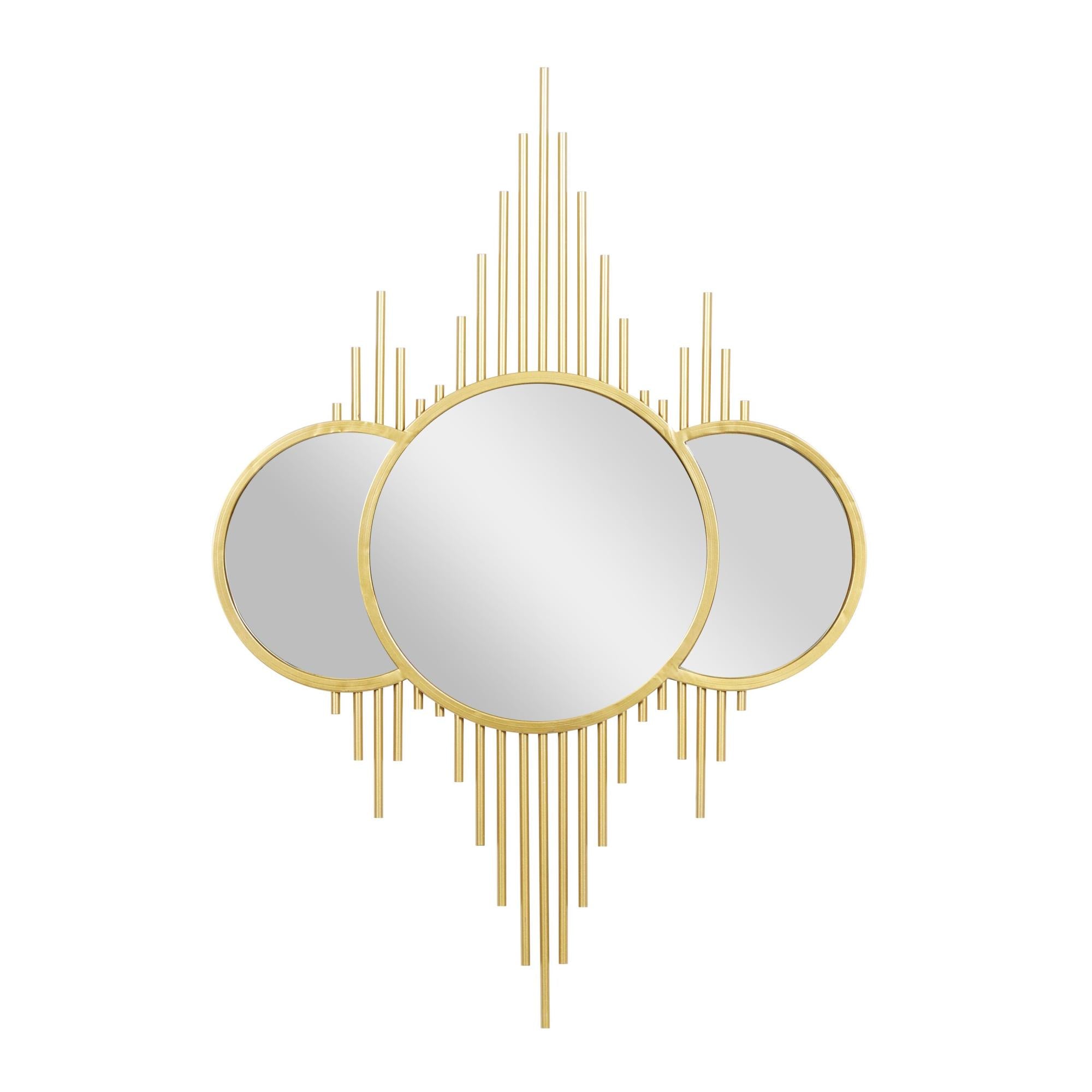 •The polished mirror for wall showcases 3 side-by-side round mirrors with a diamond-shaped exterior design