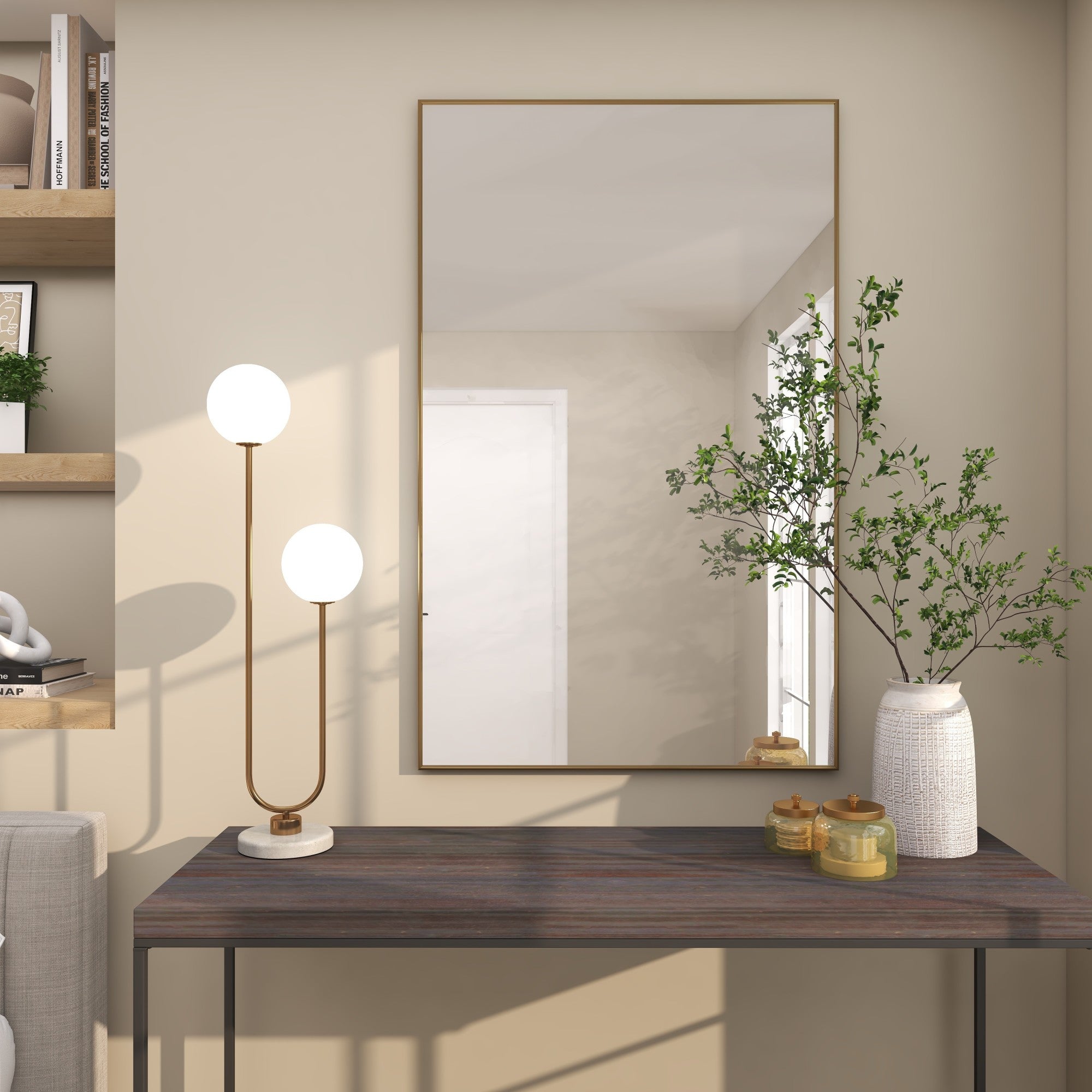Wall mirrors offer a reflective property that helps naturally brighten up any room in your home. An ideal decor for maximizing your wall space and provide a larger appearance to any room. Mount this entryway mirror in your bedroom, bathroom, or living room to add an illusion of space for your glam aesthetics. This item ships in 1 carton. Can be hung vertically using the keyholes; nails and screws not included. Suitable for indoor use only. This item ships fully assembled in one piece. This is a single entryway mirror. Glam style.