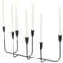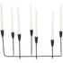 •The contemporary decorative candleholder is forged with iron to form slim interconnected bars with seven holders and is applied with a satin finish