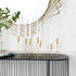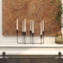 •The satin tabletop candelabra displays an interconnected iron bar with a distinctive 7-in-1 candle holder design, offering visual intrigue