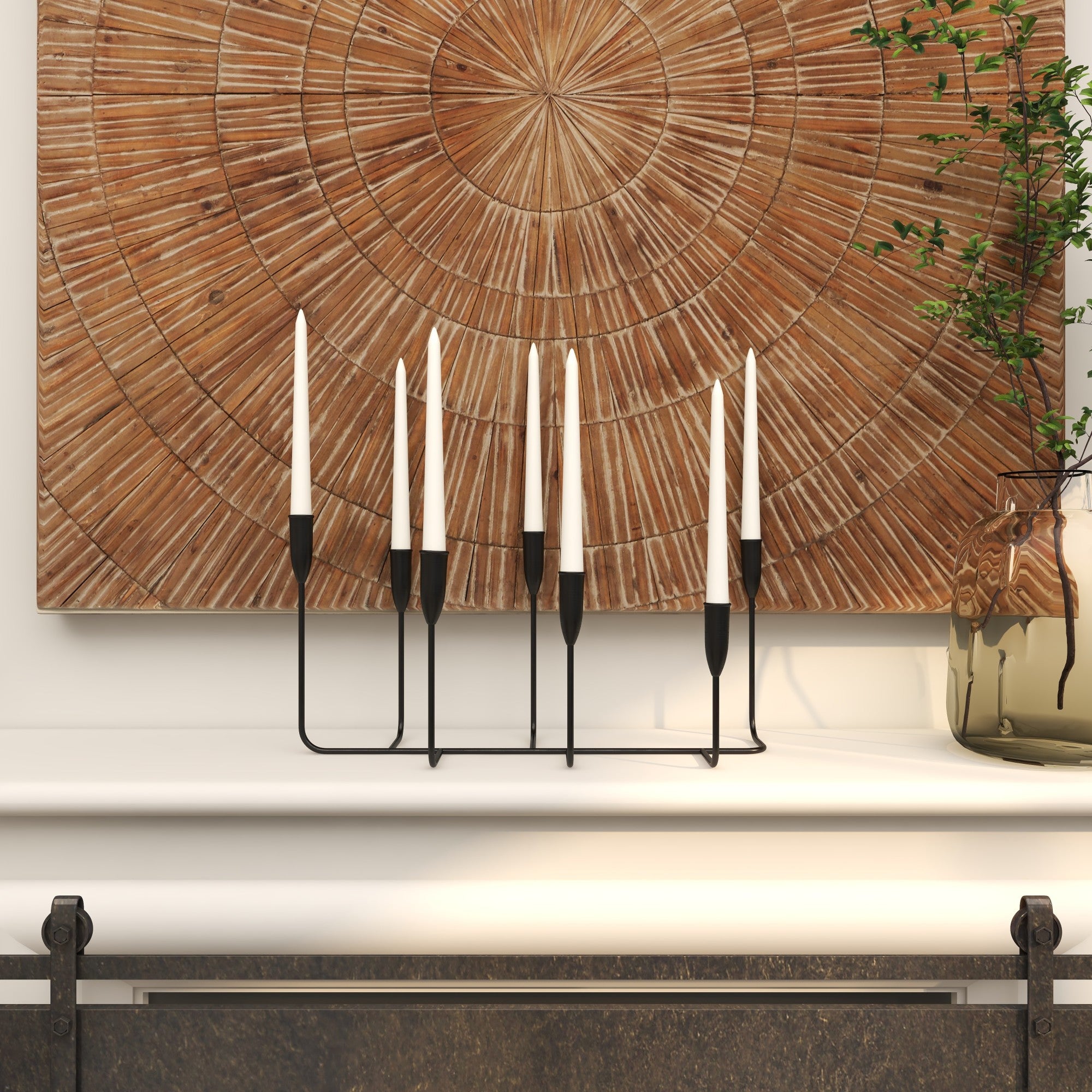 It is a great addition to your home decoration and will surely complement your existing furniture. Made with a sturdy base, it is perfect for creating an elegant atmosphere at your table top or mantel. Place the candlestick holder in light-toned living rooms as a stunning focal point that enhances both modern and classic interiors. Can hold 7 taper candles, not included. This item ships in 1 carton. Suitable for indoor use only. This item ships fully assembled in one piece. Made in India. This is a single candlestick holder. Contemporary style.
