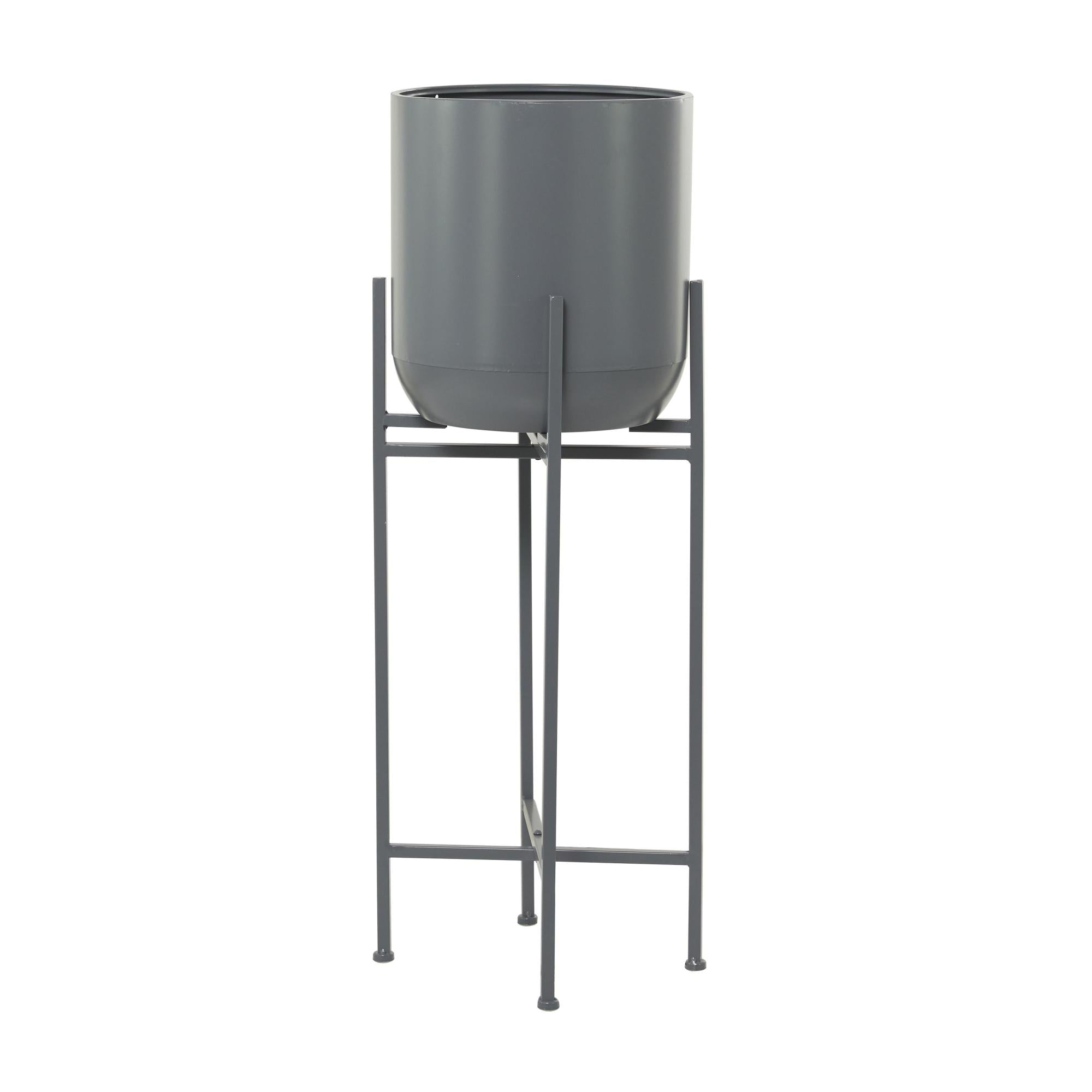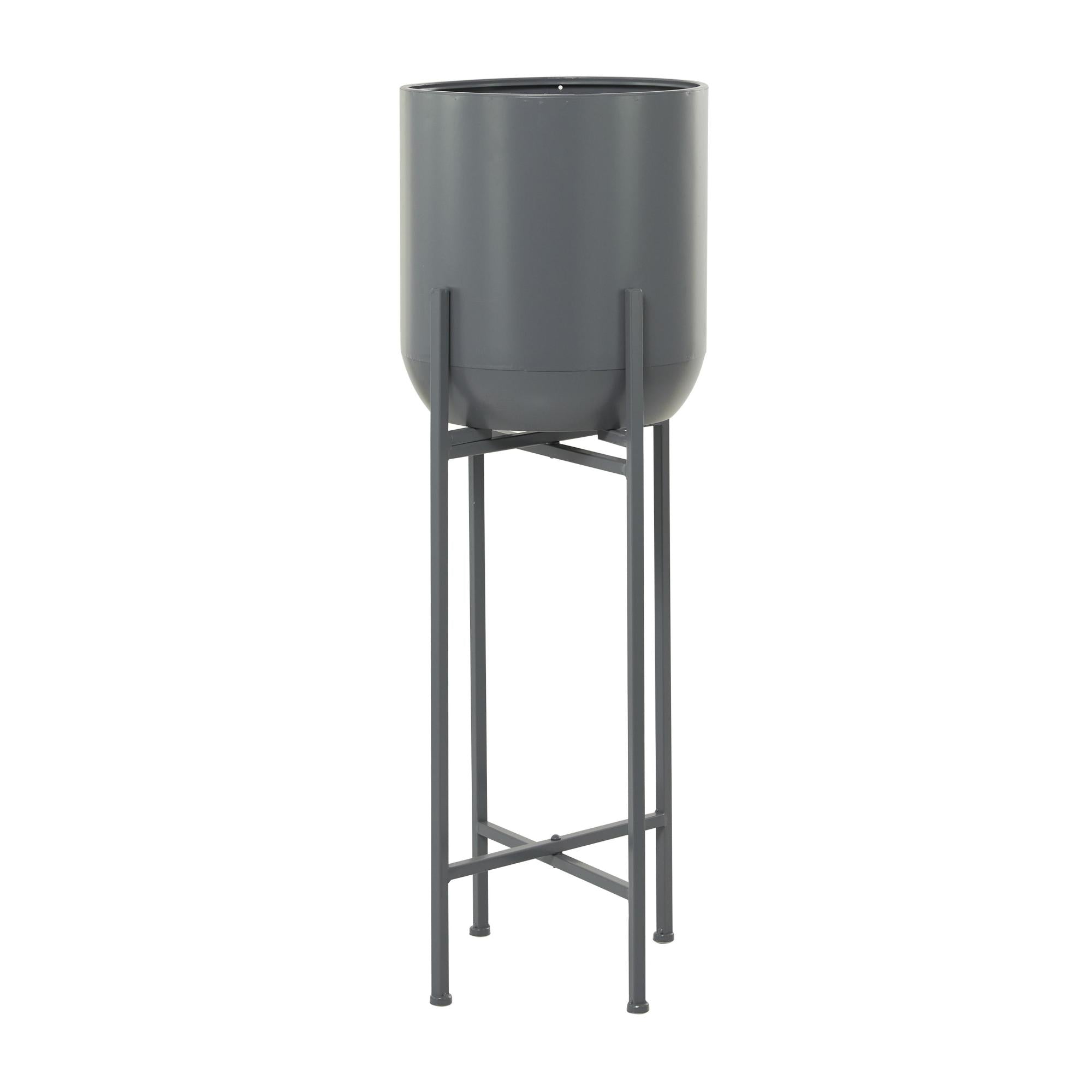 •Each part of this modern planter for outdoor plants, from the sleek metal body to the sturdy stand, is welded with iron and applied with a satin finish that ensures an exquisite balance of beauty and functionality