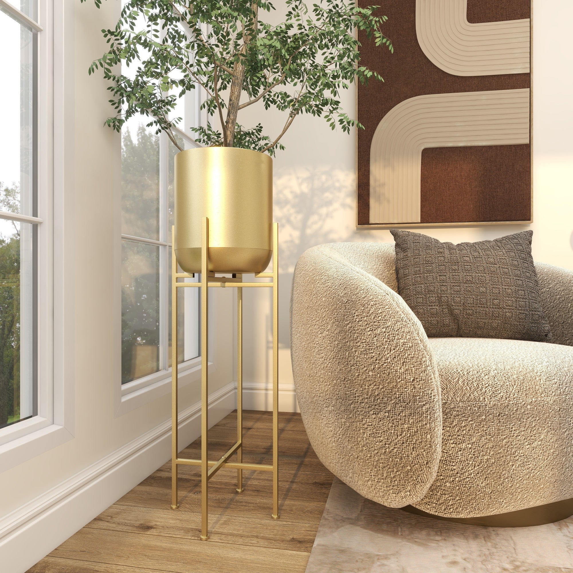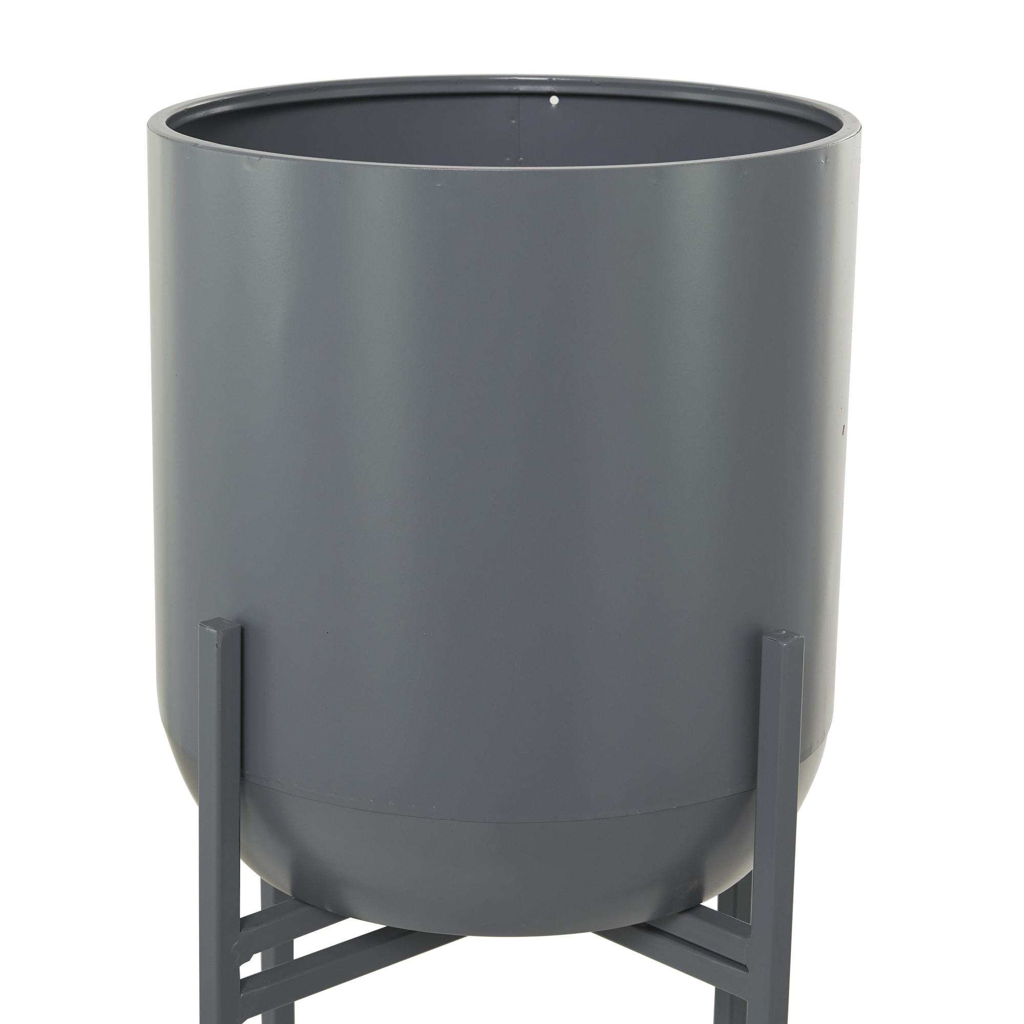 •Each part of this modern planter for outdoor plants, from the sleek metal body to the sturdy stand, is welded with iron and applied with a satin finish that ensures an exquisite balance of beauty and functionality