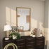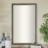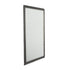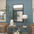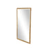 •The modern accent wall mirror has a sophisticated rectangular glass panel securely encased in a metal frame and supported by a wood backing