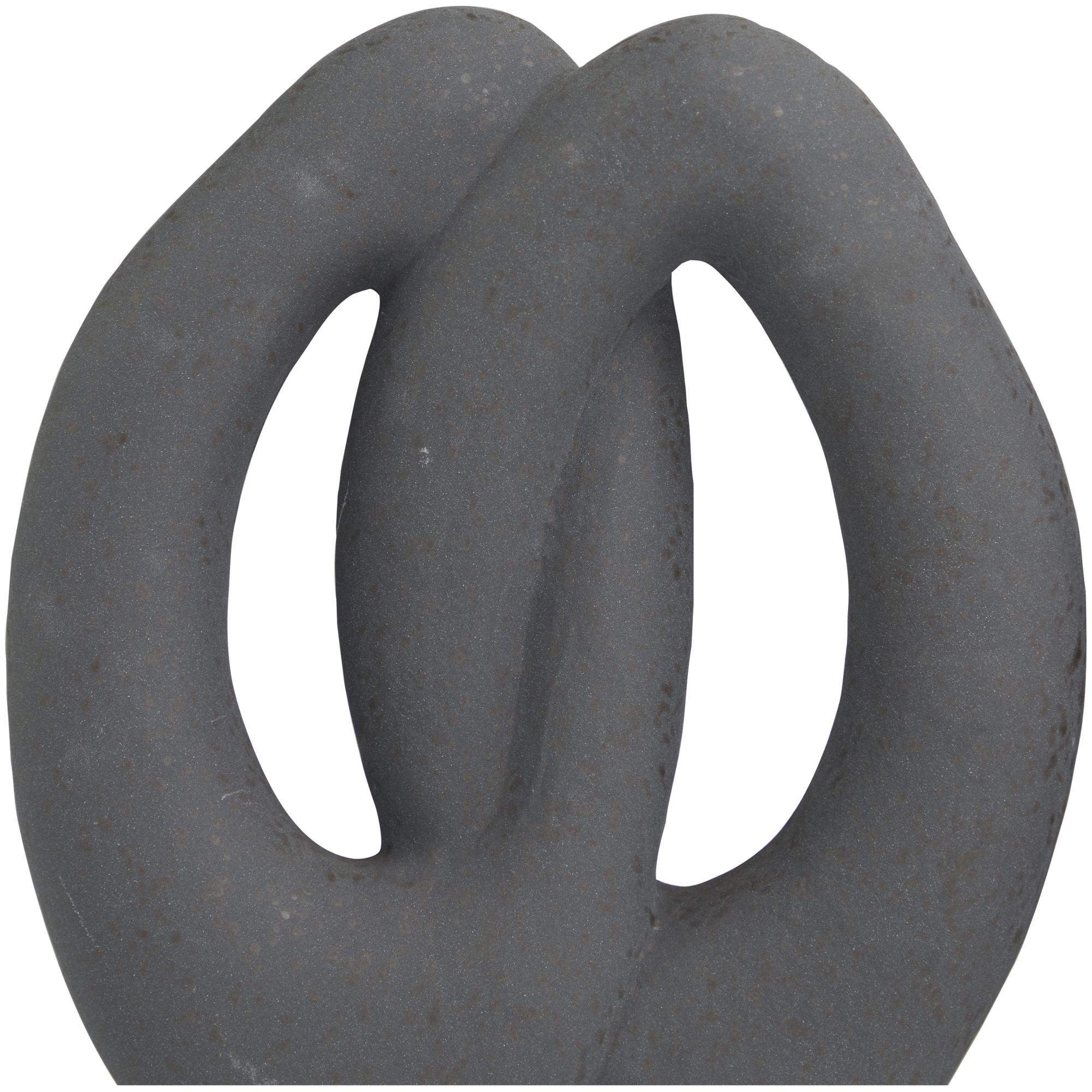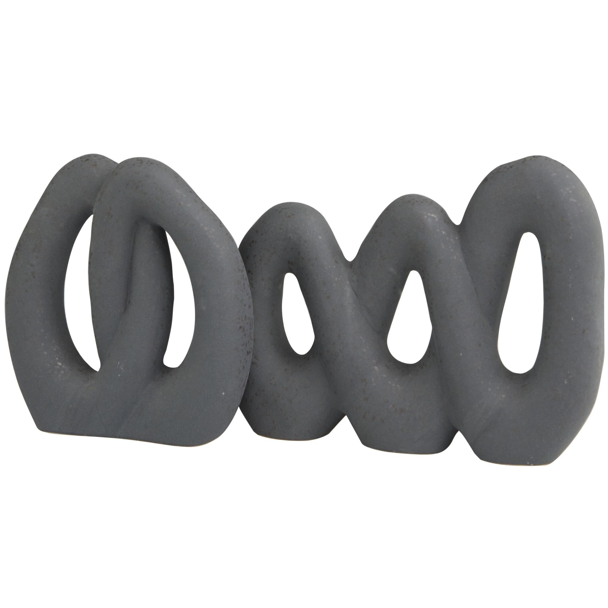 •Each piece resembles interwoven circles, adding unique dimensions to any flat surface in this stoneware set of 2 sculptures