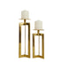 CosmoLiving by Cosmopolitan Set of 2 Geometric Aluminum Metal Pillar Decorative Candle Holder