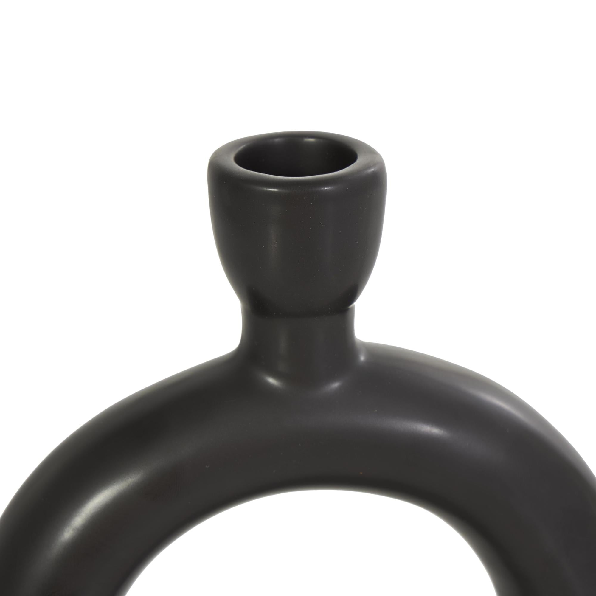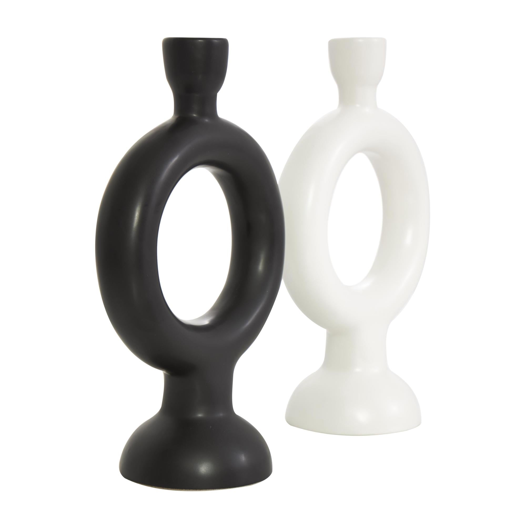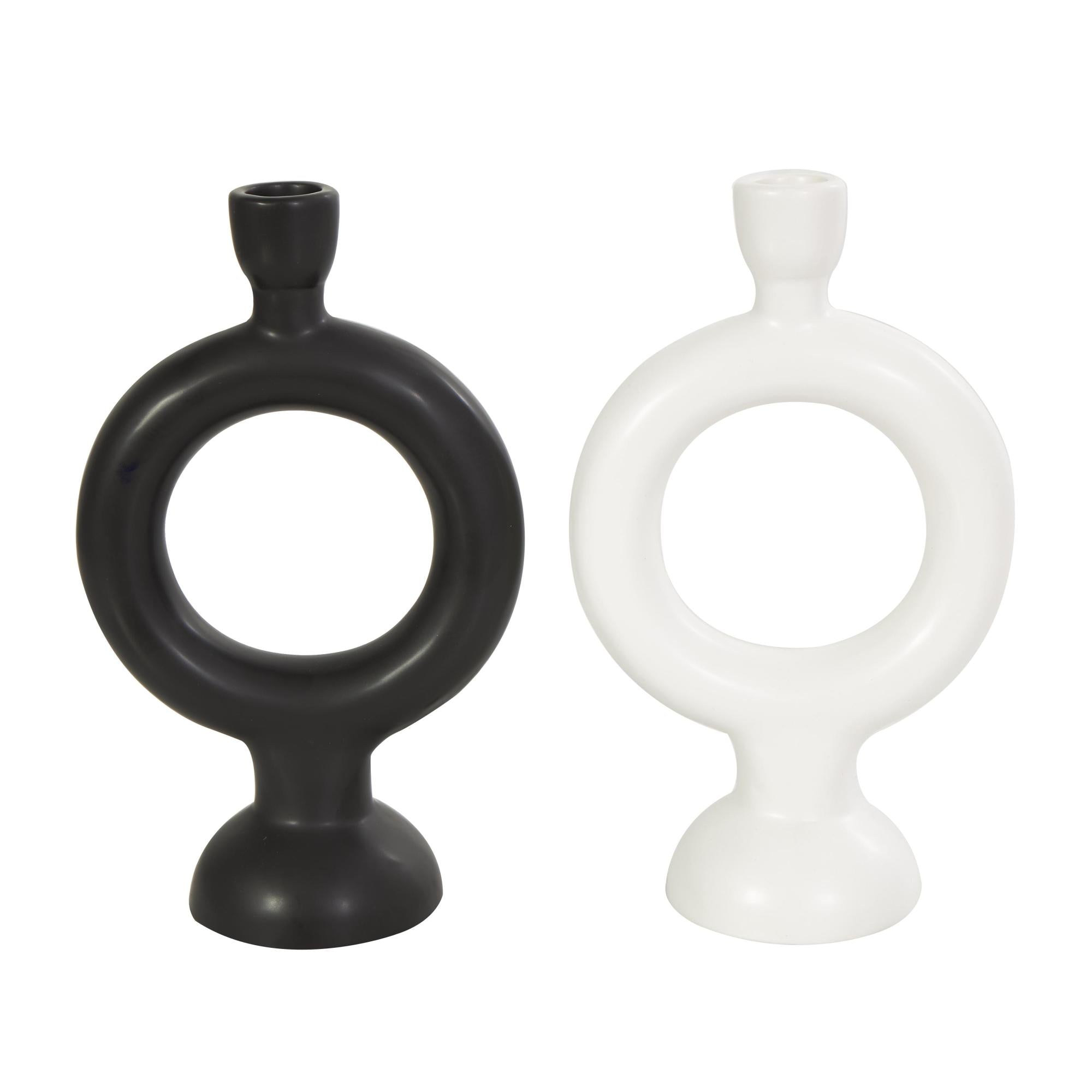 CosmoLiving by Cosmopolitan Set of 2 Geometric Black Ceramic Ring Decorative Candle Holder