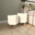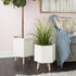 •Magnesium set of 2 planters features sturdy wooden legs, adding an element of height and drama to your plant display