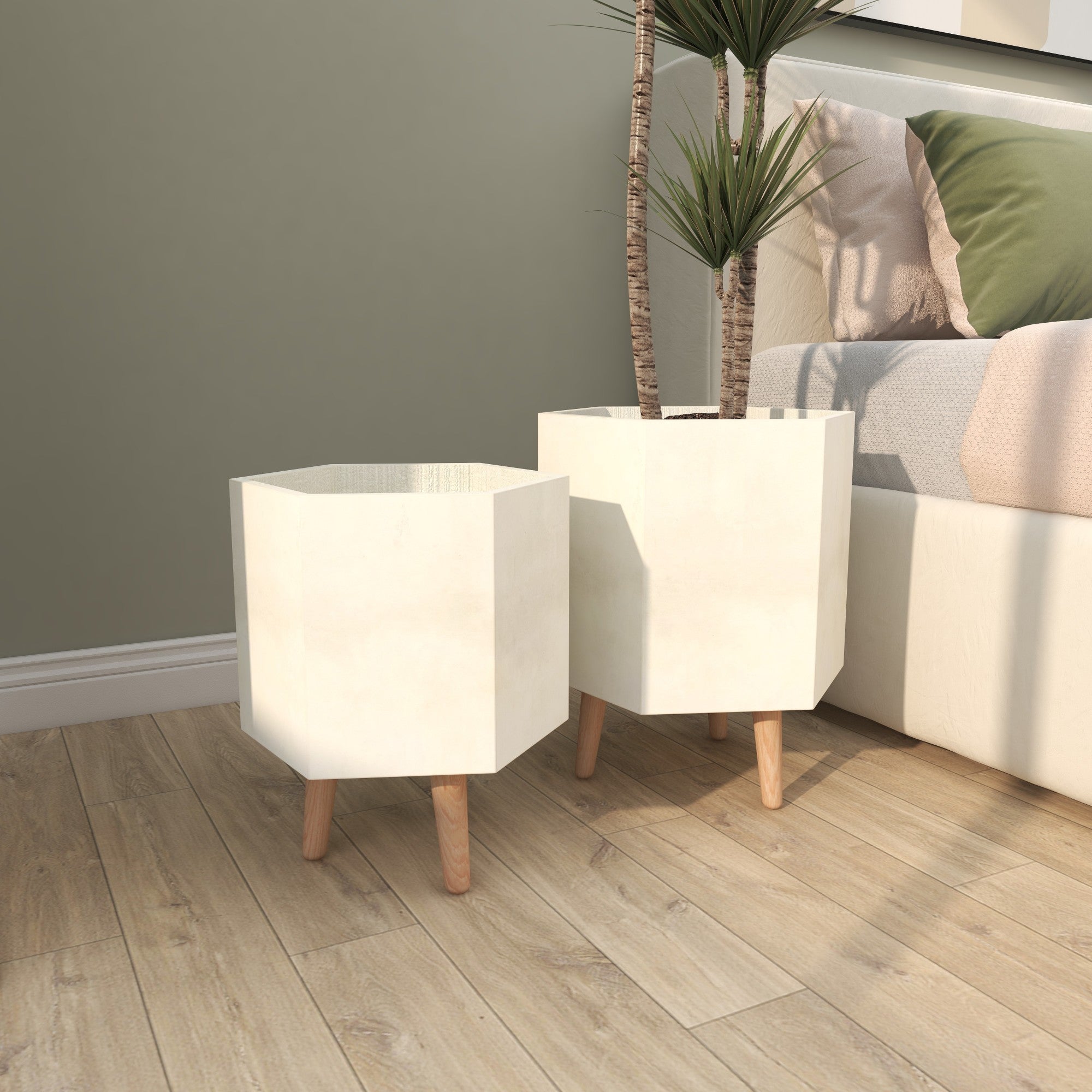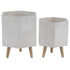 CosmoLiving by Cosmopolitan Set of 2 Geometric Light Gray Magnesium Oxide Hexagon Indoor Outdoor Planter with Brown Wooden Legs