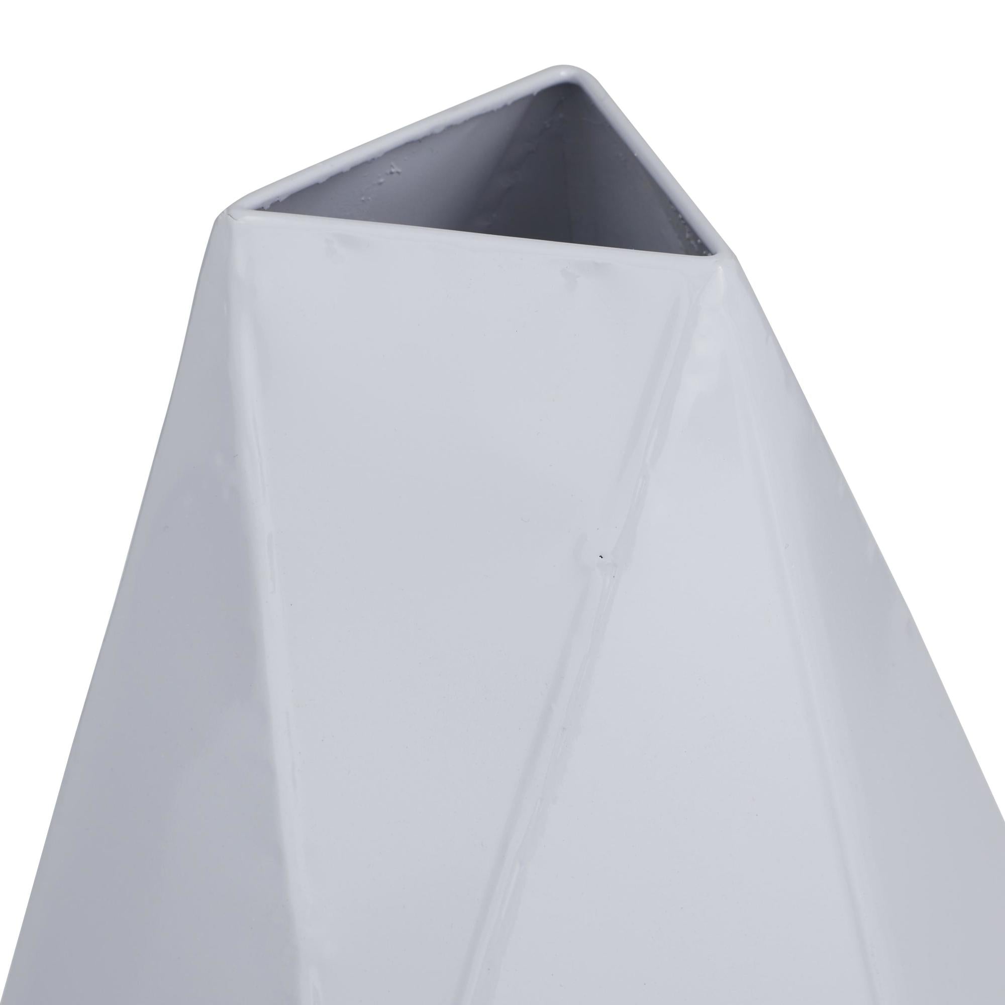 Ideal for any room, the geometric set of 2 centerpiece vases adds a contemporary touch. Designed with felt or rubber stoppers at the base that prevent scratching furniture and table tops, as well as sliding around. This item ships in 1 carton. Suitable for indoor use only. This item ships fully assembled in one piece. This iron vase comes as a set of 2. Contemporary style. Vases have 2.50 in, and 2 in mouth openings.