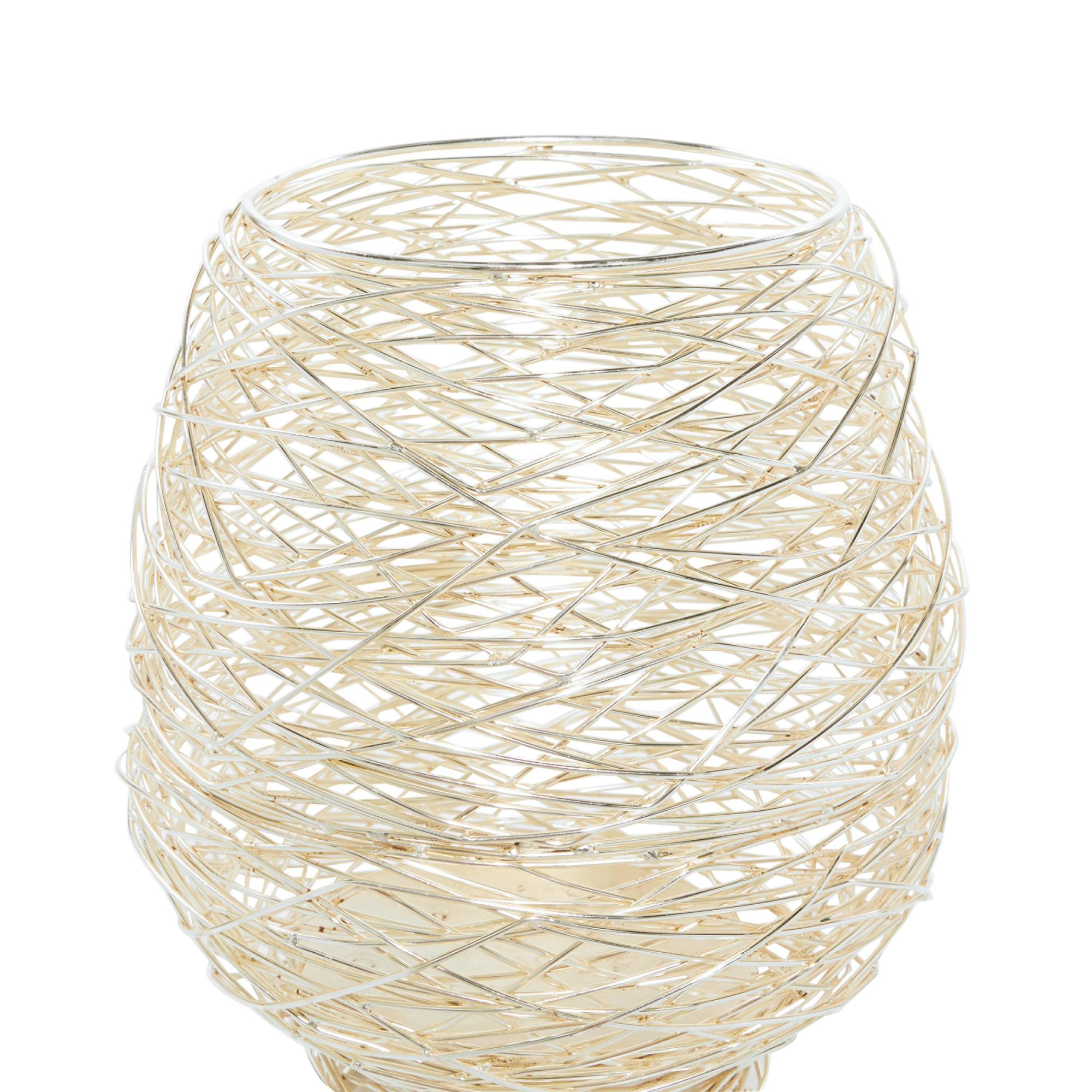 •Metal set of 2 candle lanterns features elegant wire wrapping and intricate detailing that allows light to gently filter through, creating a warm and inviting atmosphere