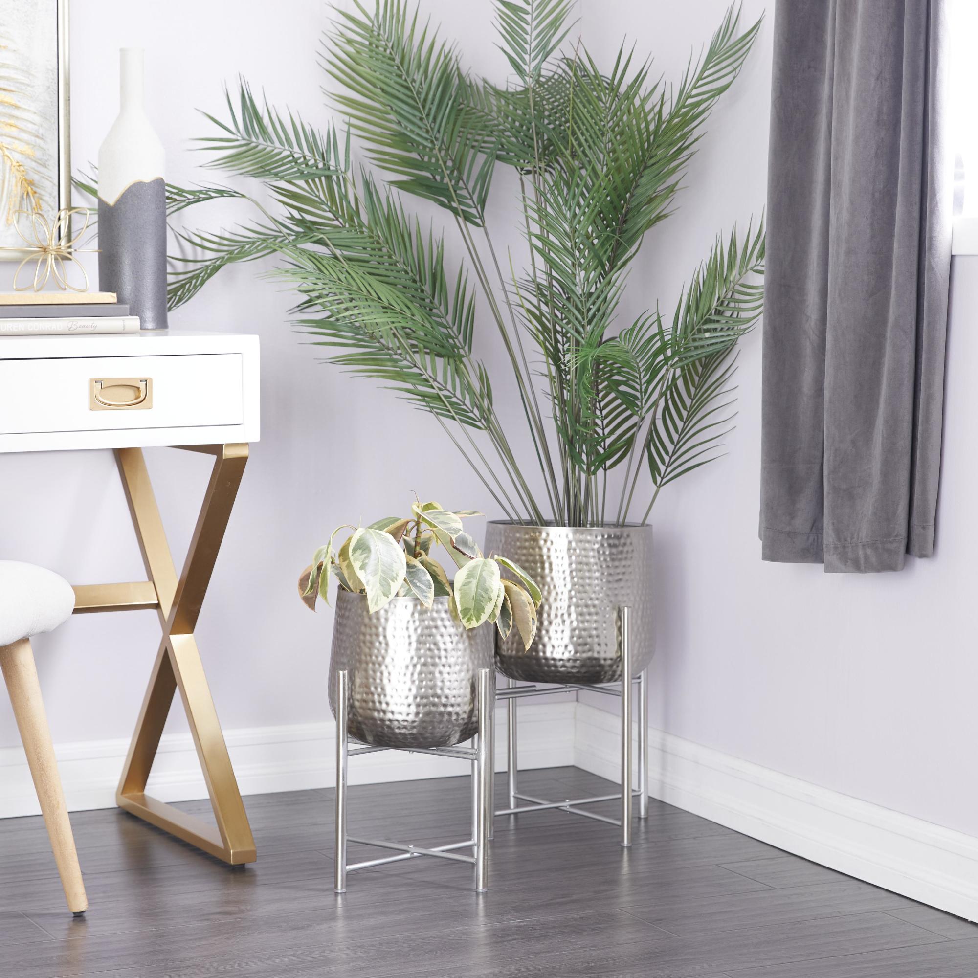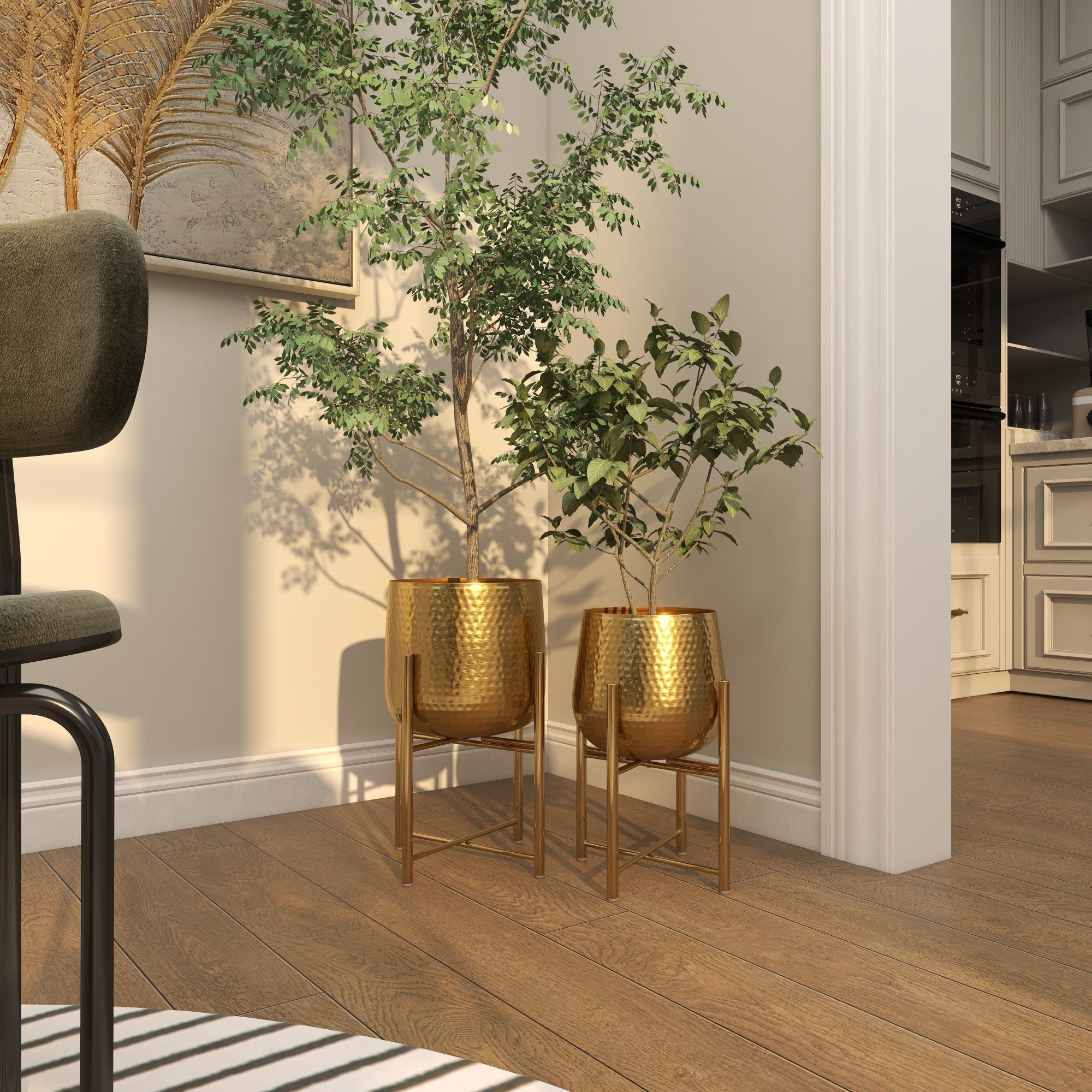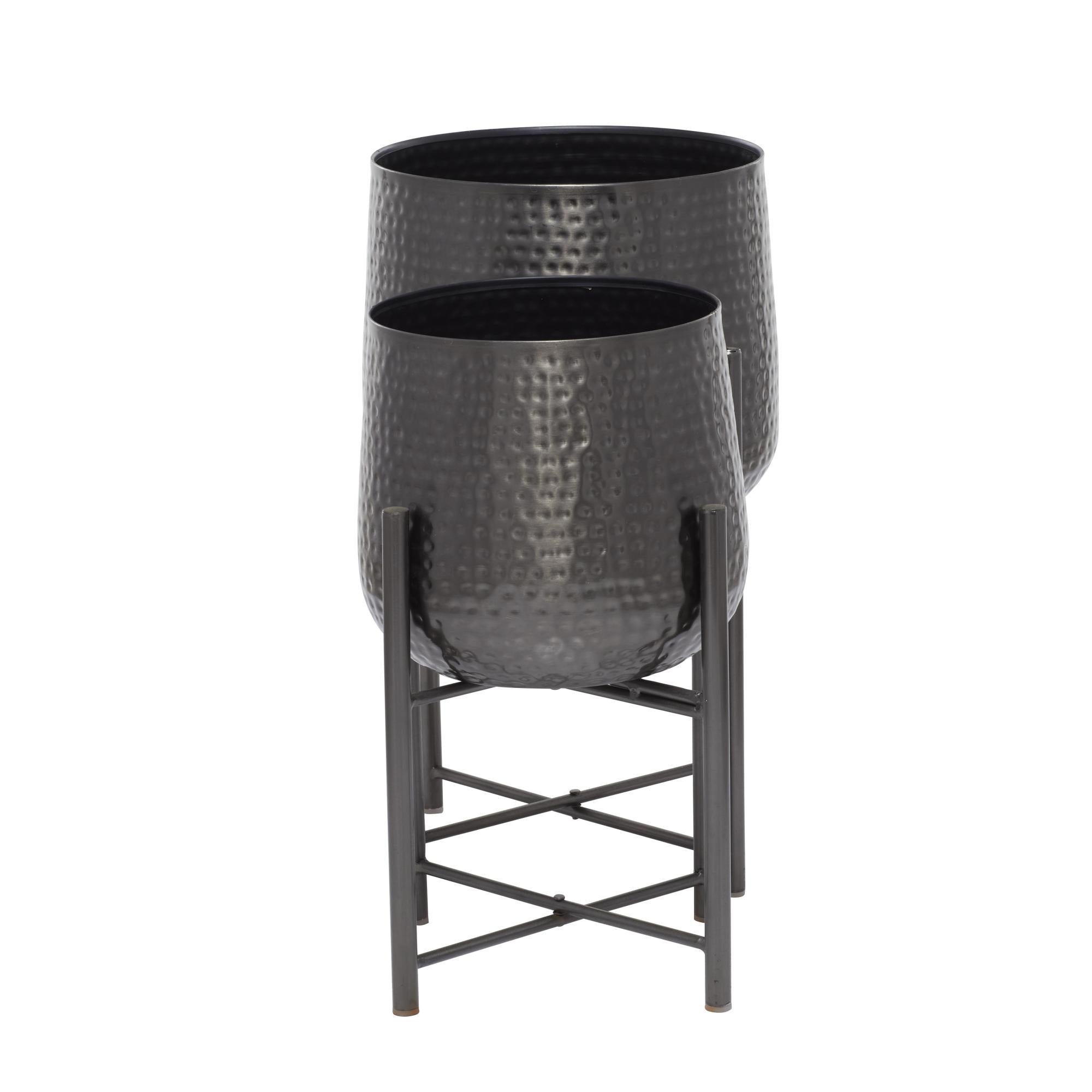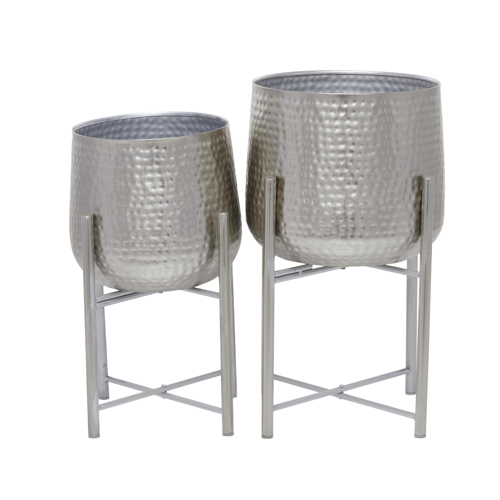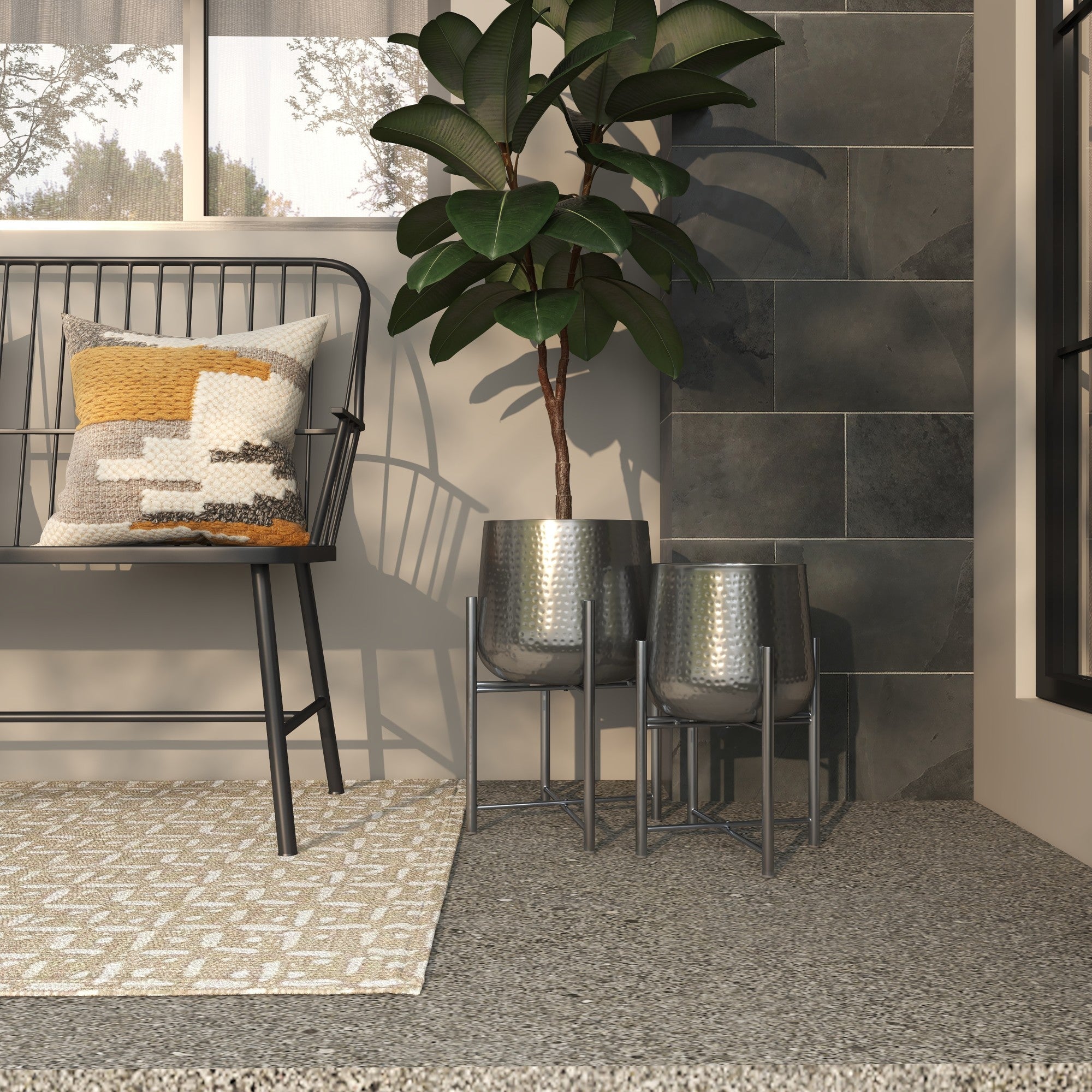 CosmoLiving by Cosmopolitan Set of 2 Metal Hammered Indoor Outdoor Planter with Removable Stand
