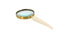 •Metallic rims wrap around the large magnifiers; 3 handle shapes: one horn, one horn, and one cylinder handle with diagonal etched lines and hardware at the tip