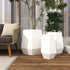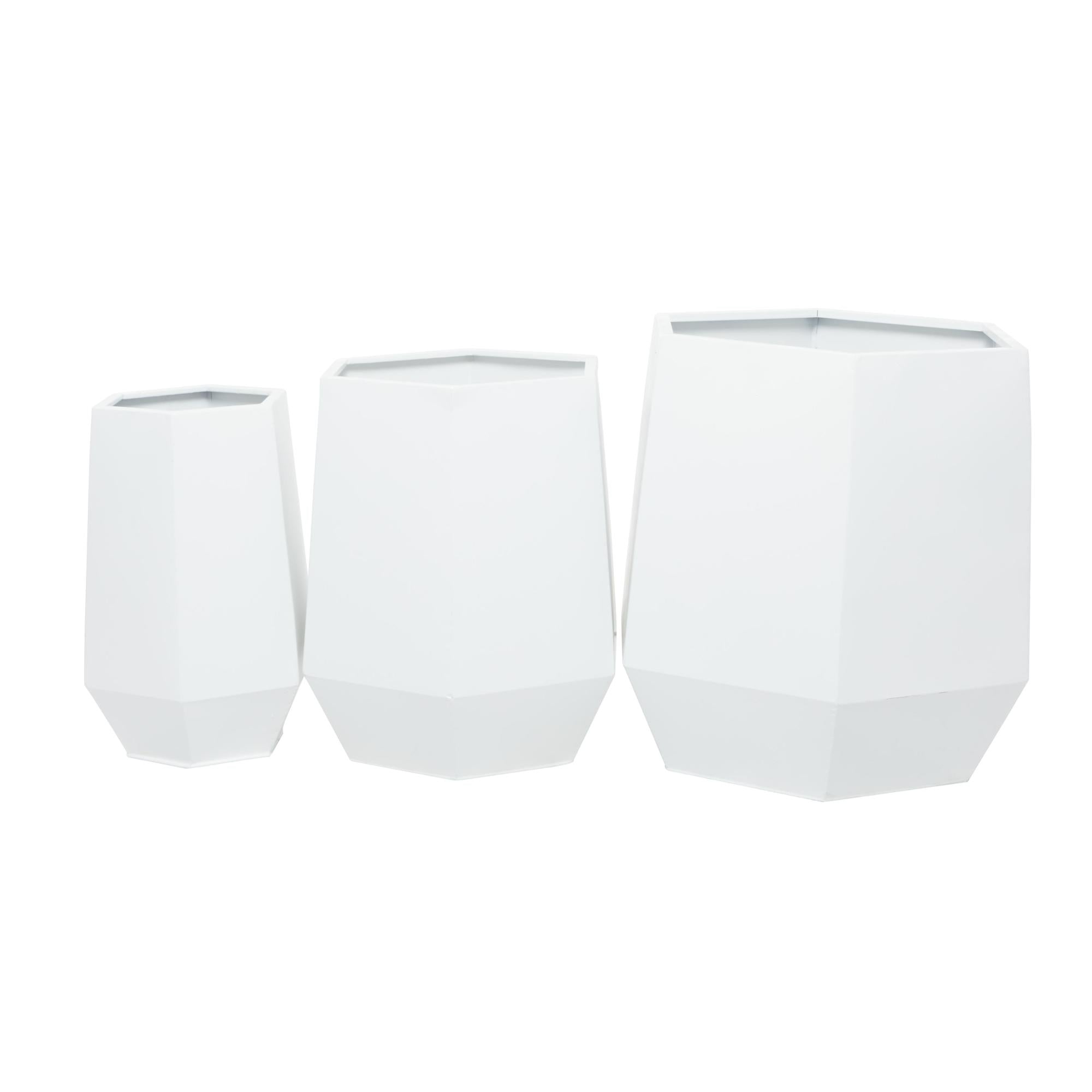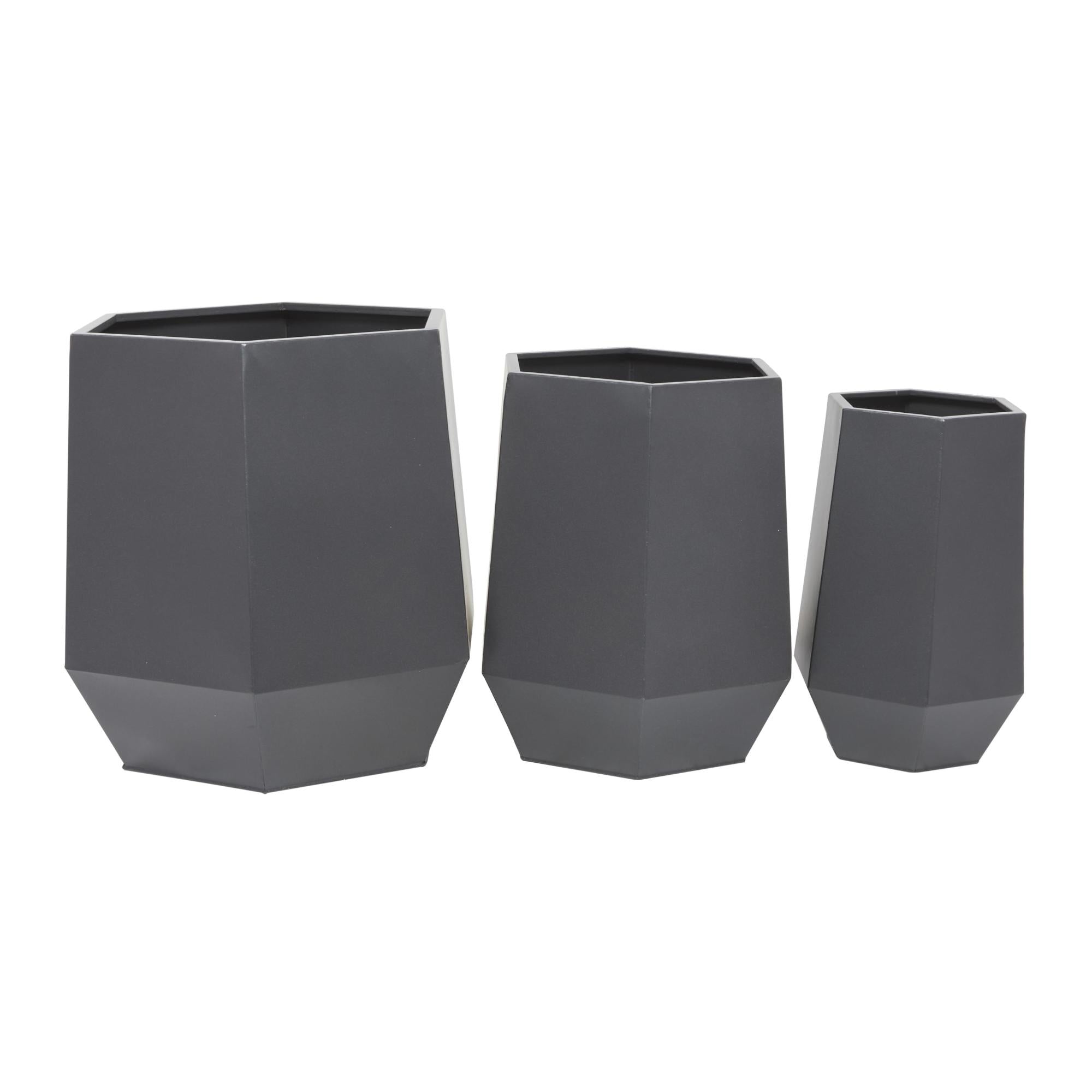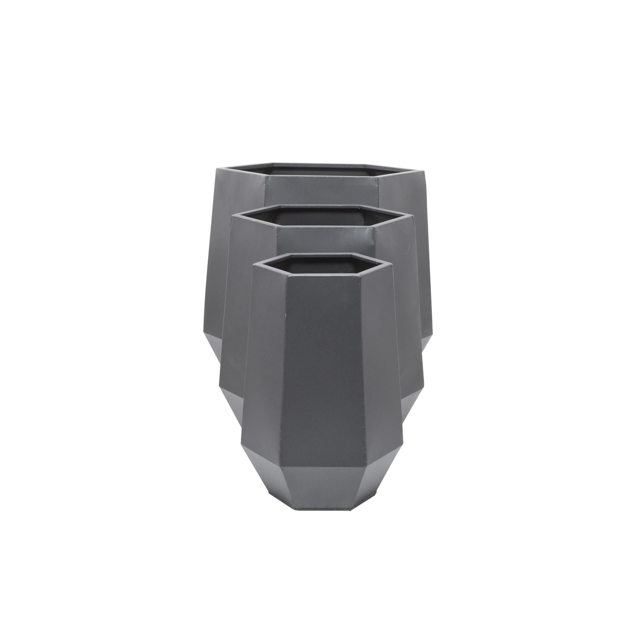 Exhibit your greens and flowers with this planter set that adds a posh touch to your home garden. This item ships in 1 carton. Please note that this item is for decorative use only. Suitable for indoor and outdoor use. This item ships fully assembled in one piece. Maximum weight limit is 20 lbs. Planters do not have drainage holes but they are not watertight. This plant pot comes as a set of 3. Modern style.
