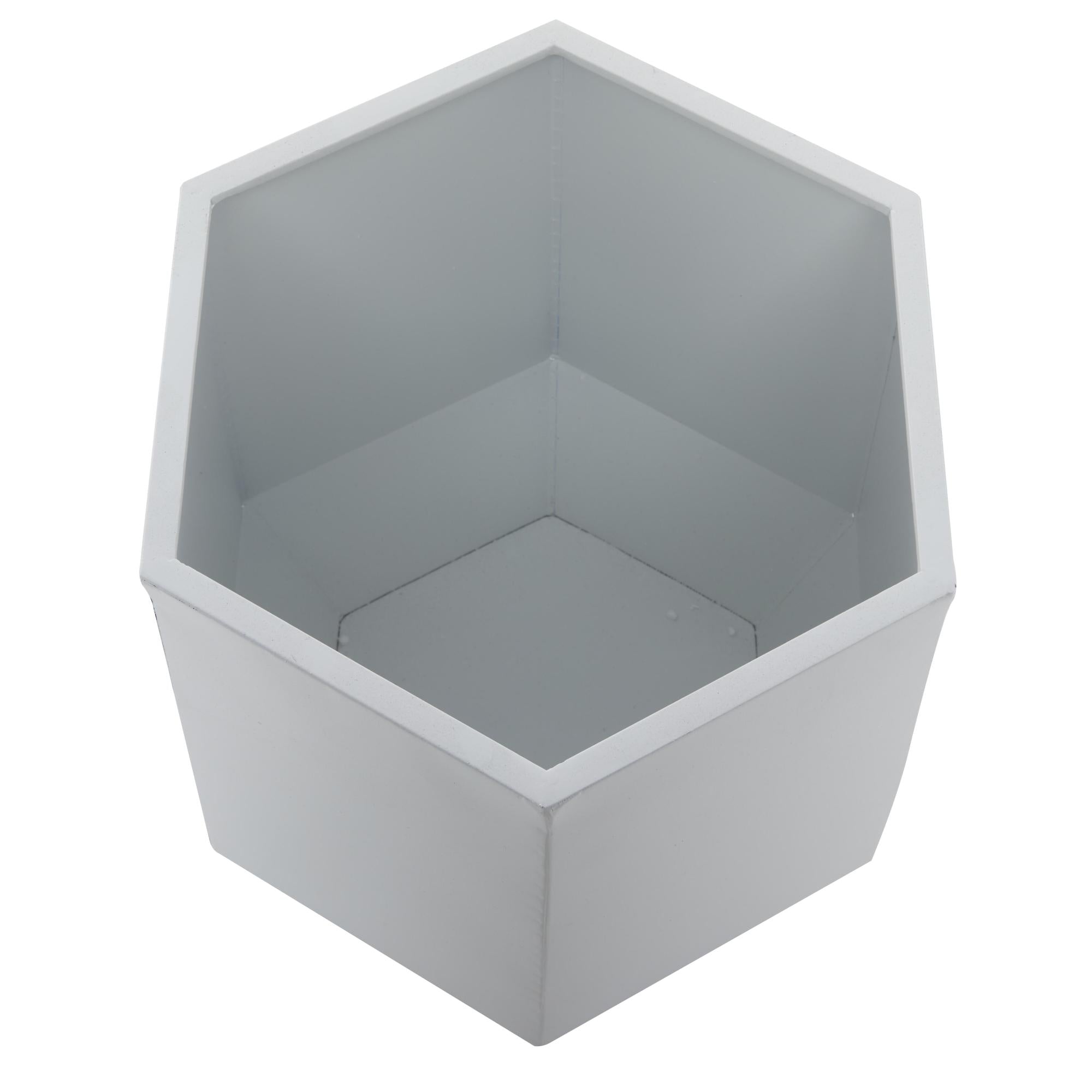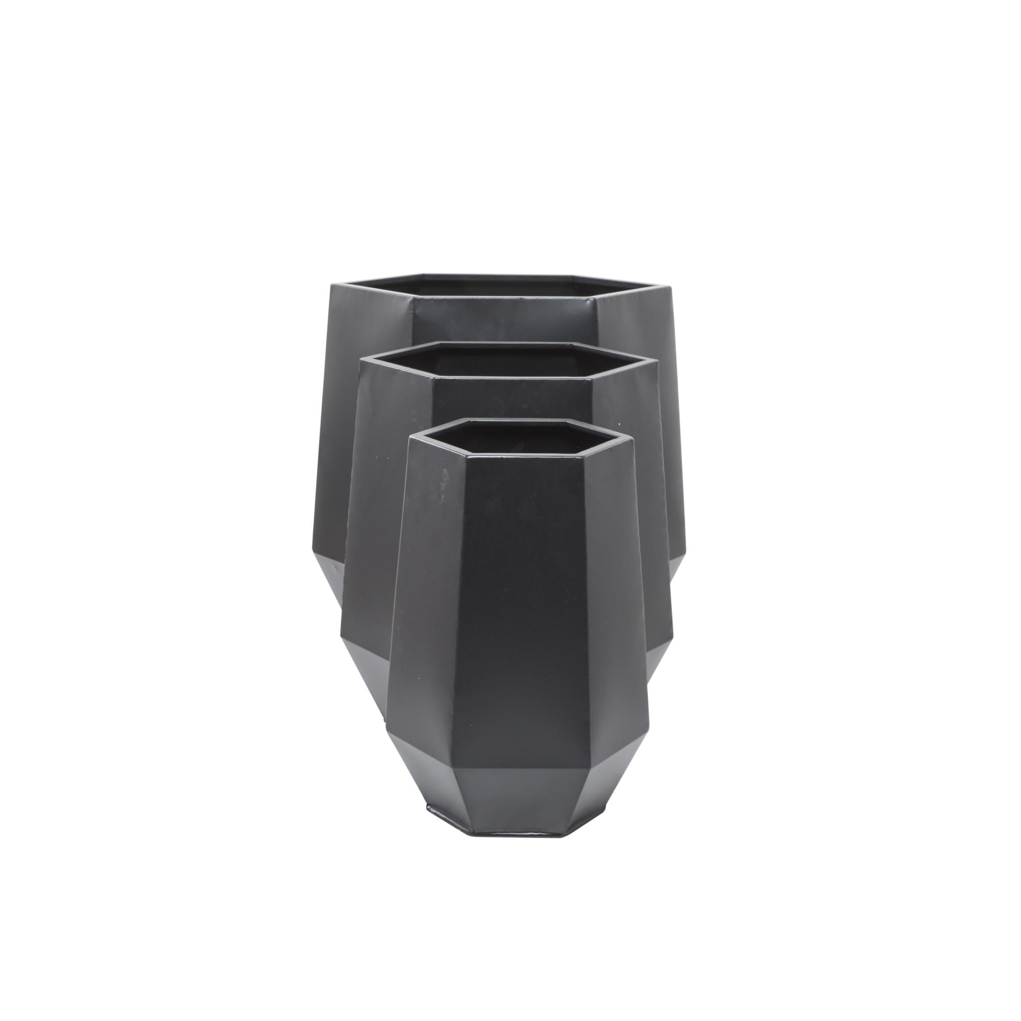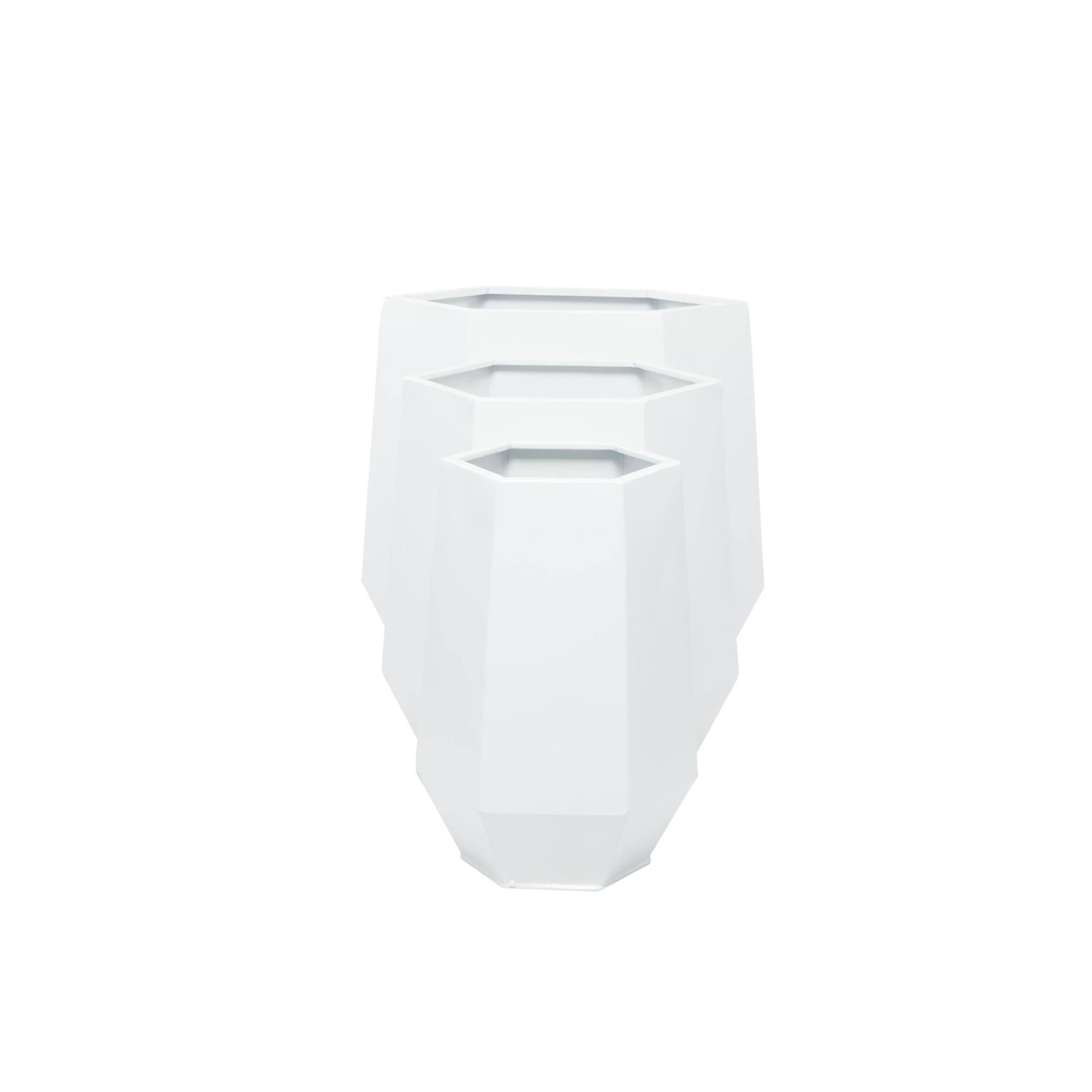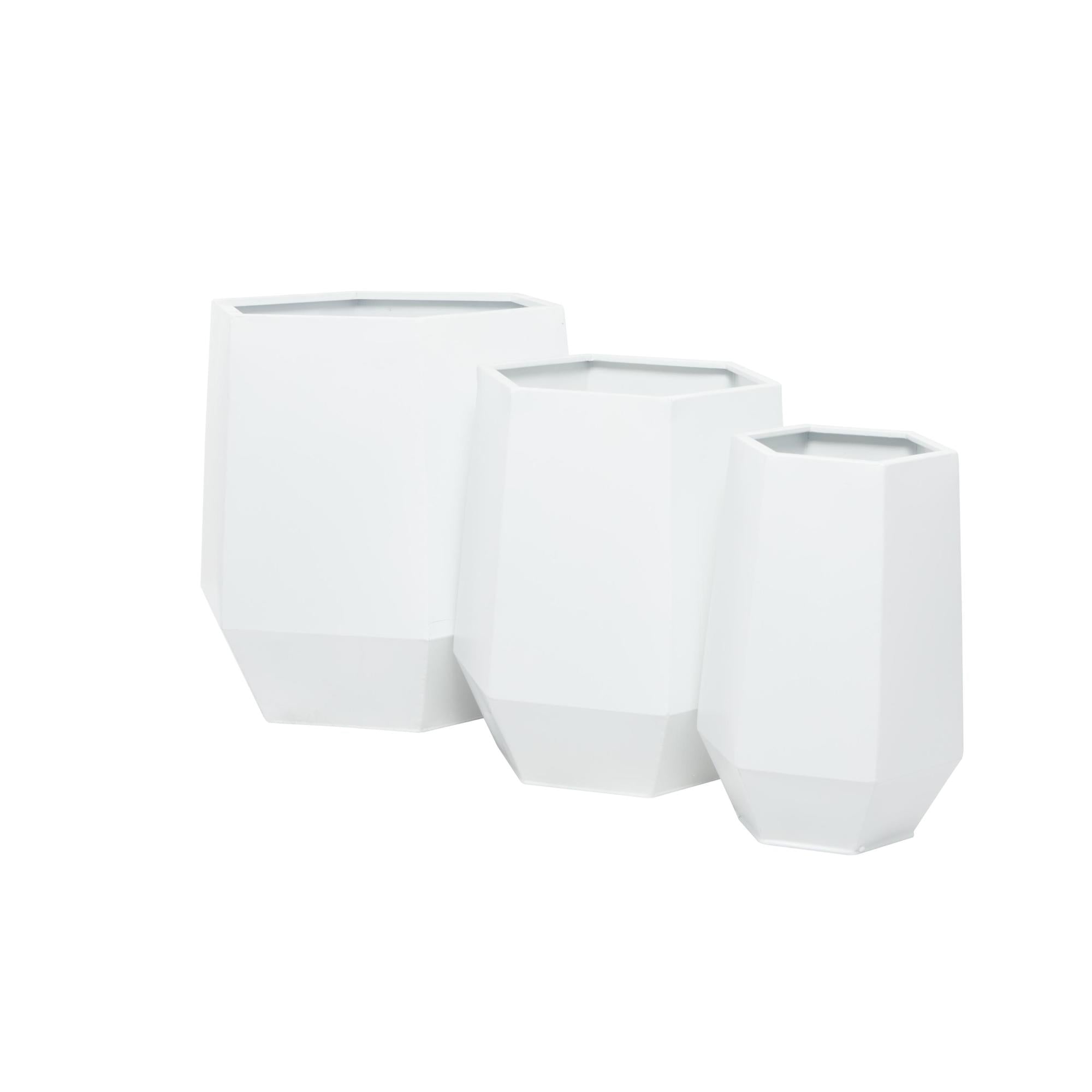 •A set of planters with faceted bodies and hexagonal mouth openings