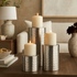 •Metal has been molded and applied with a shiny finish to create an elegant look for this industrial set of 3 candle holders for home decor