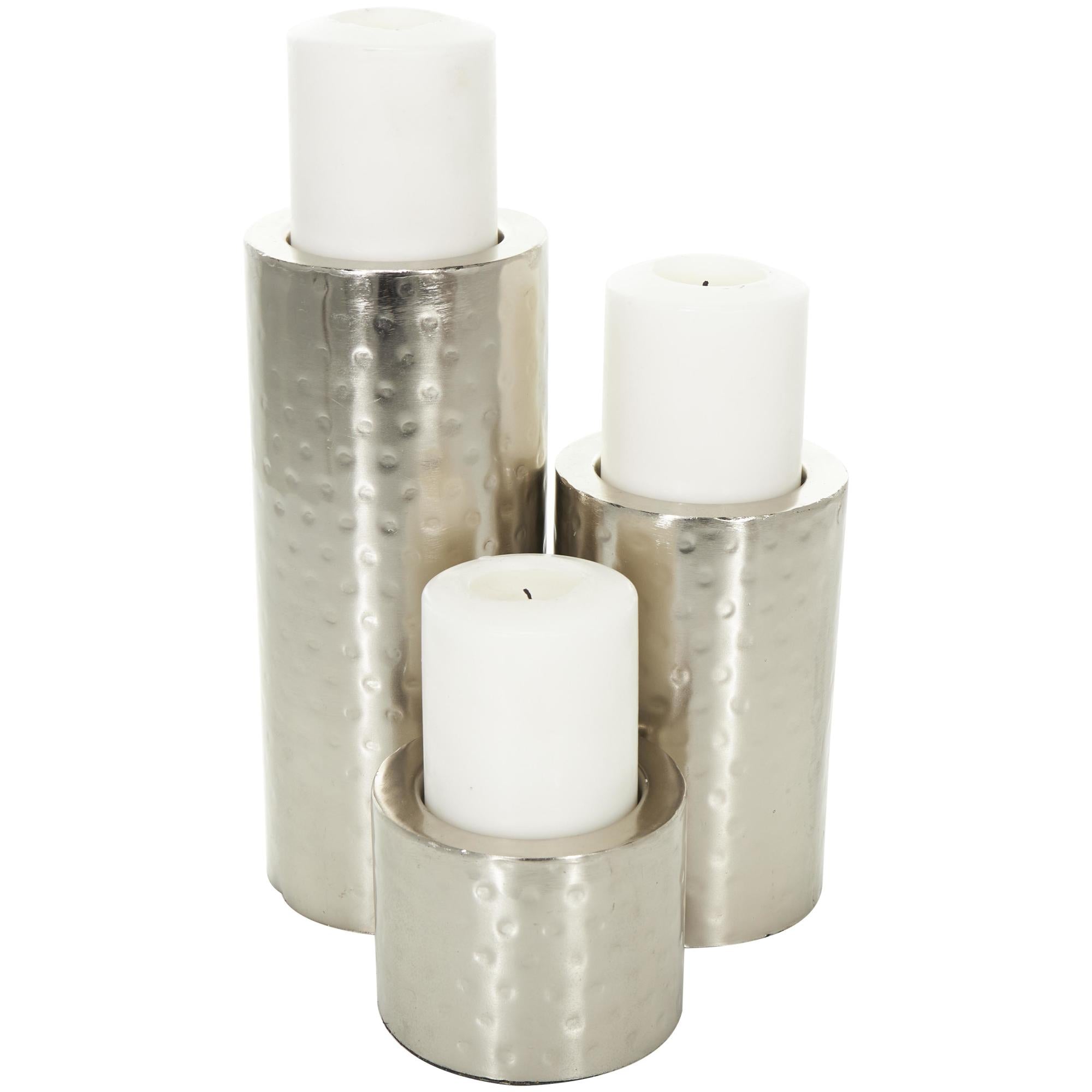 CosmoLiving by Cosmopolitan Set of 3 Metal Handmade Pillar Decorative Candle Holder Set of 3 11", 7", 4"H