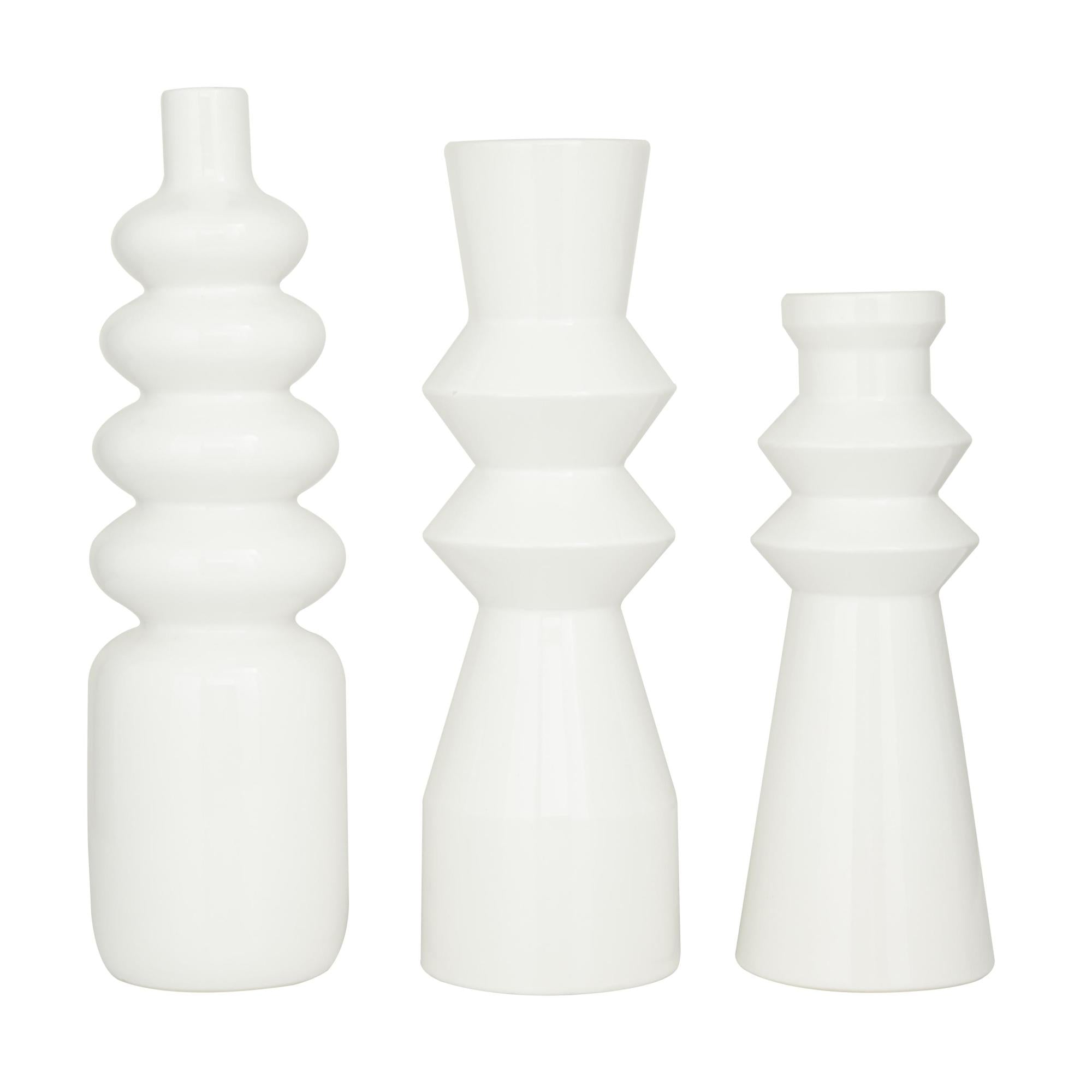 CosmoLiving by Cosmopolitan Set of 3 White Ceramic Decorative Vase with Bubble Texture Designs