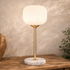 •Crafted from a glass orb shade, iron post, and a natural marble base, this room table lamp exudes sturdiness and elegance