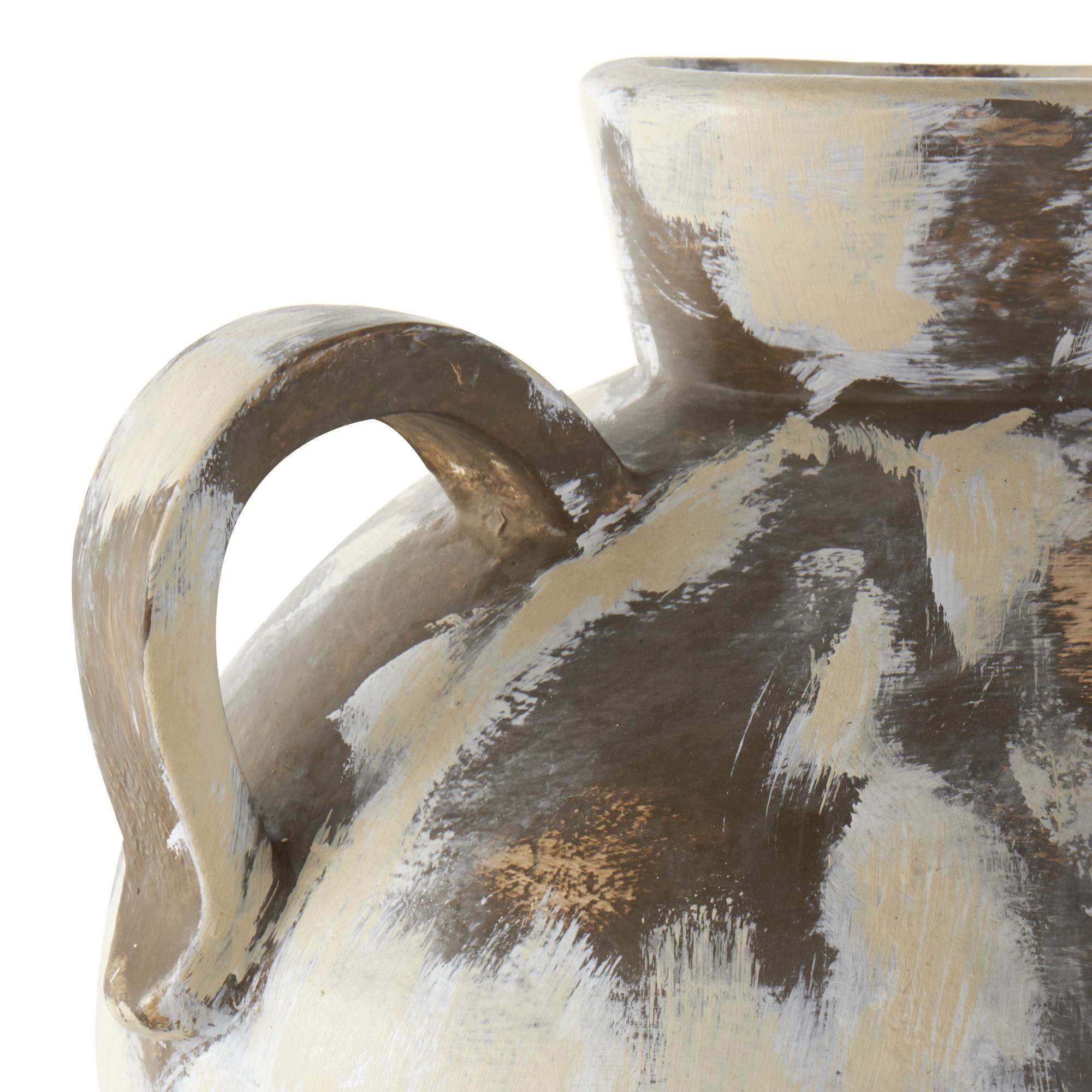 Cream Ceramic Antique Style Pot Decorative Vase with Arched Handles