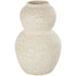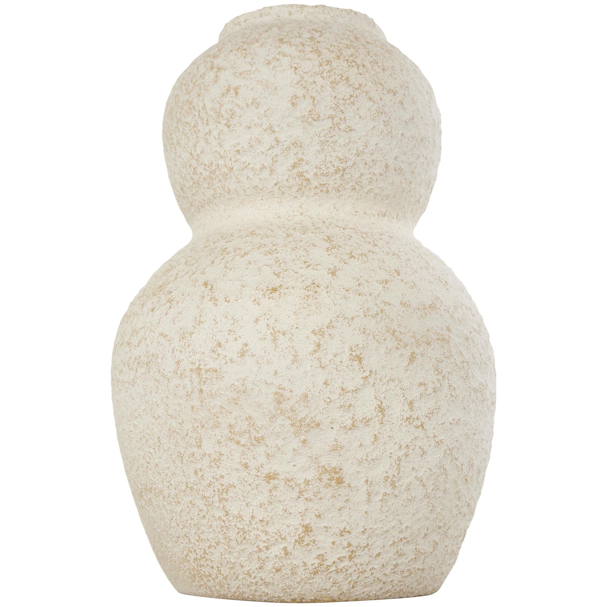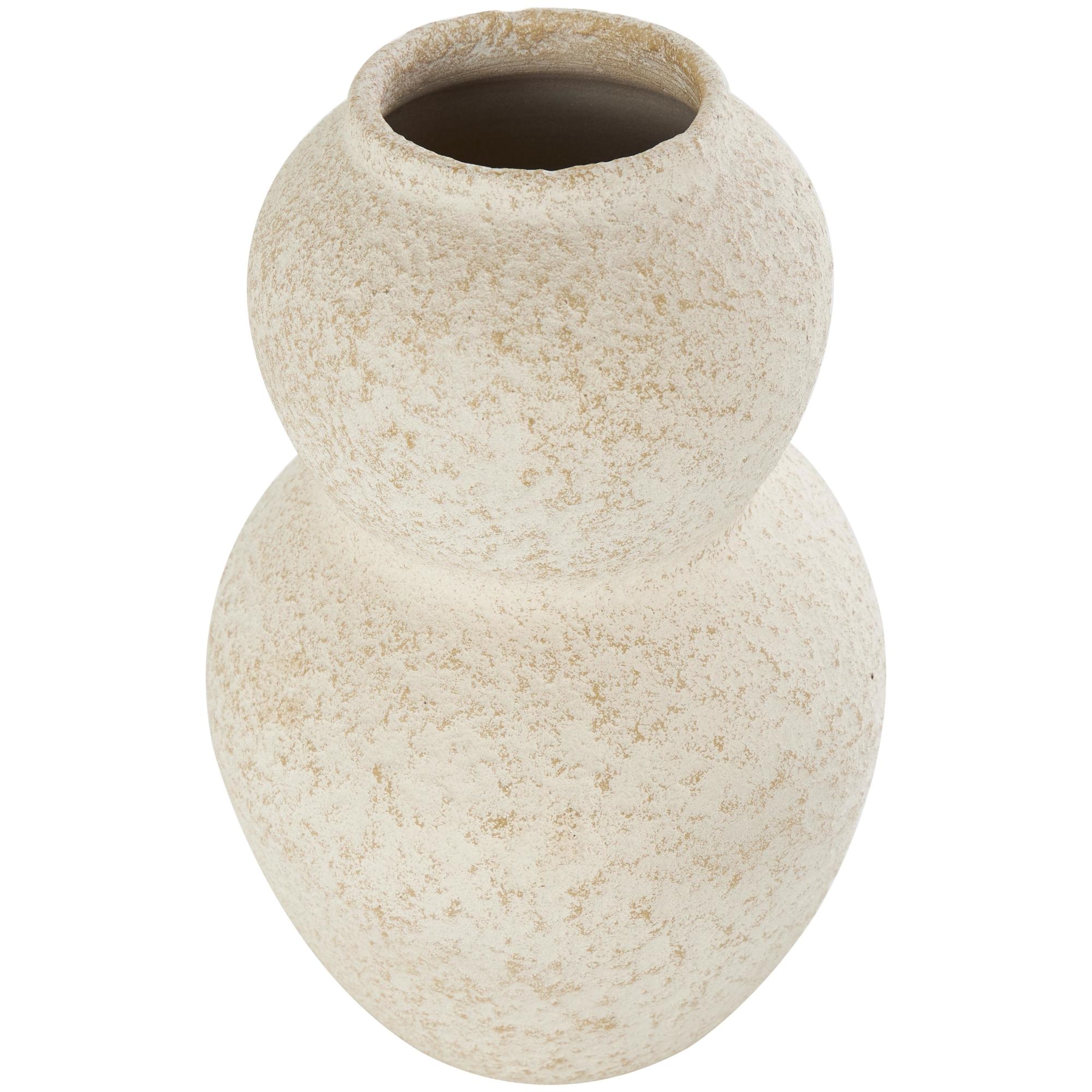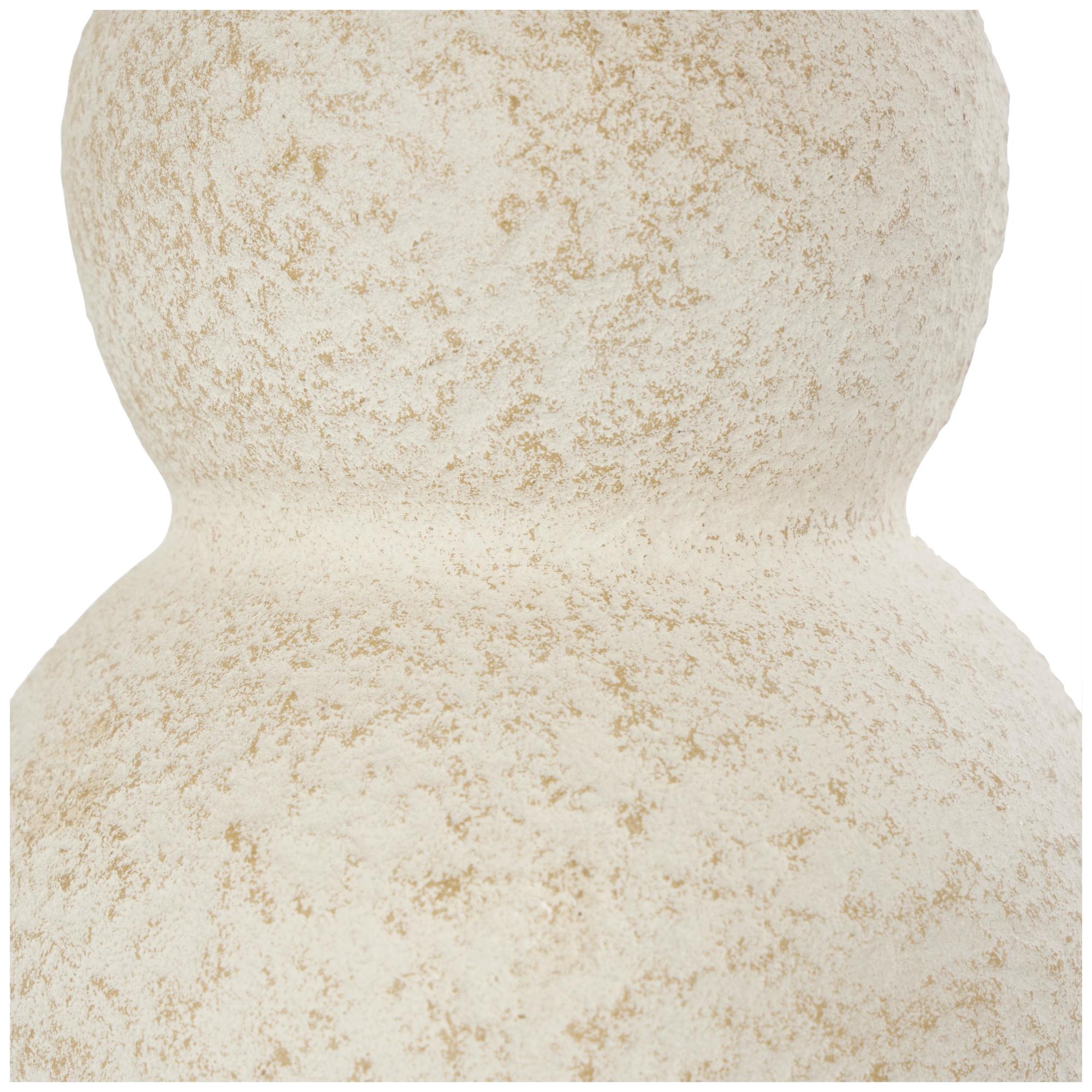 Cream Ceramic Hourglass Textured Decorative Vase with Brown Distressing