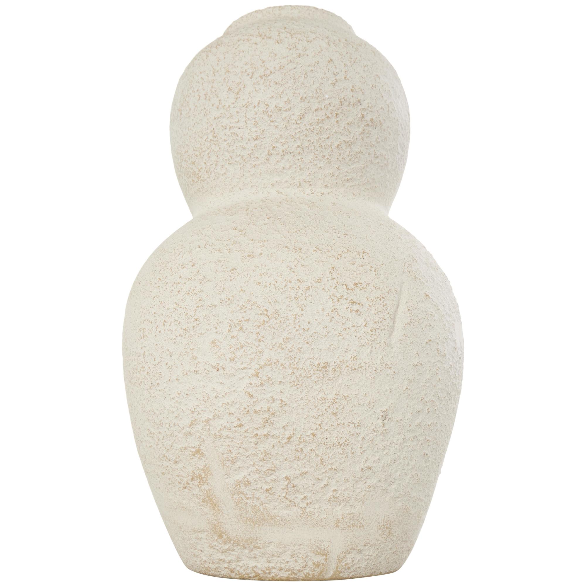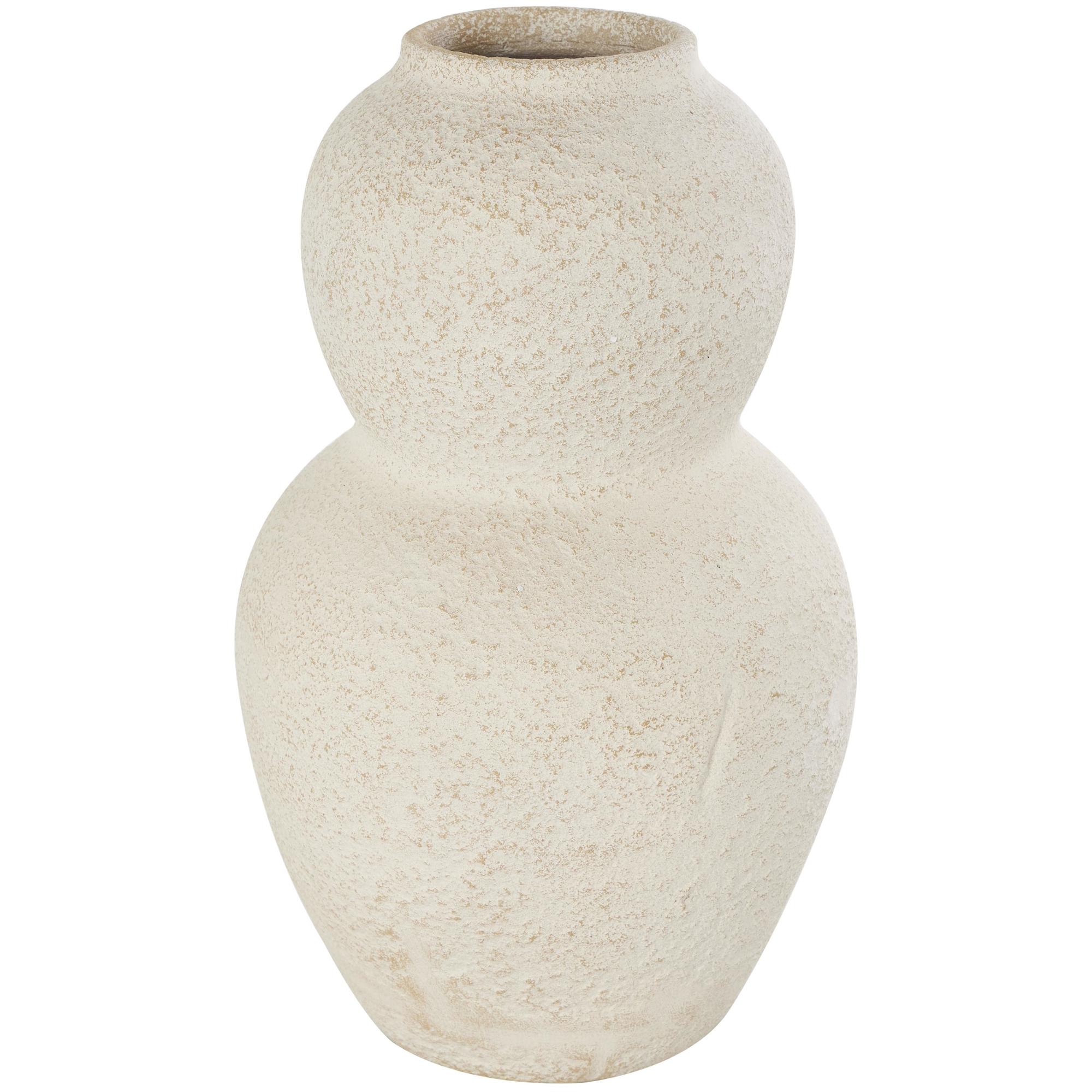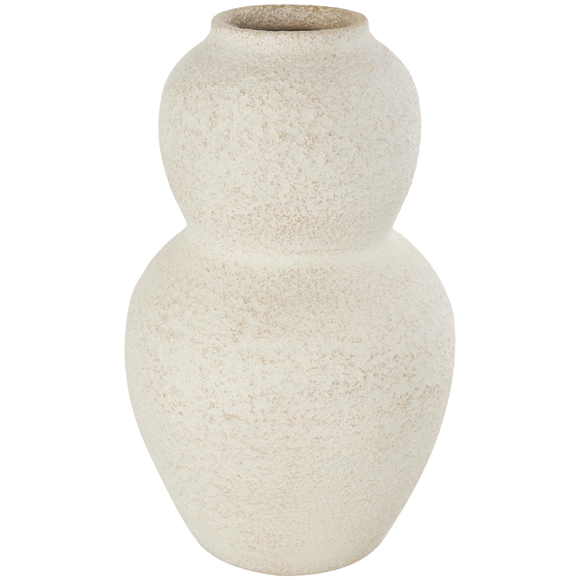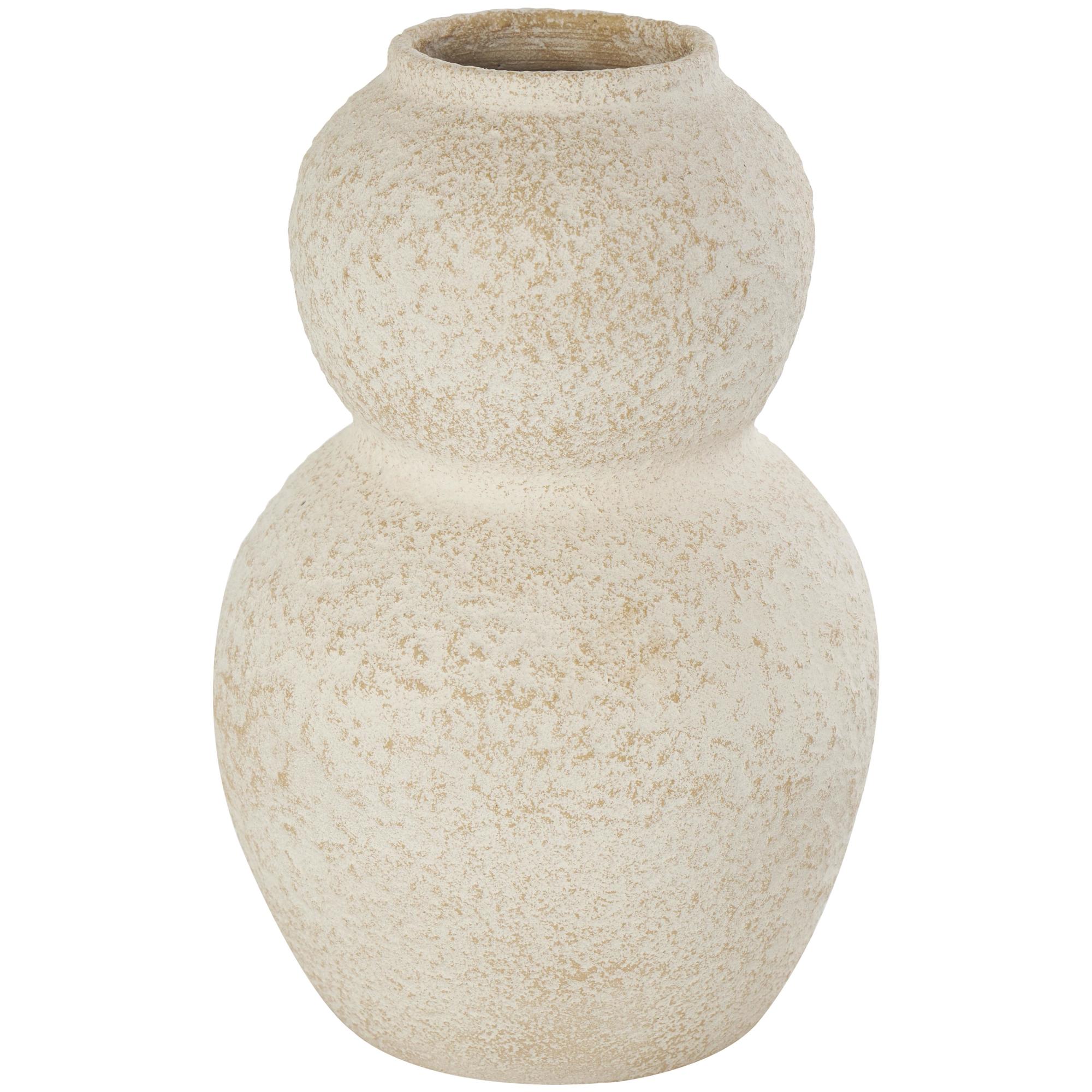 Cream Ceramic Hourglass Textured Decorative Vase with Brown Distressing