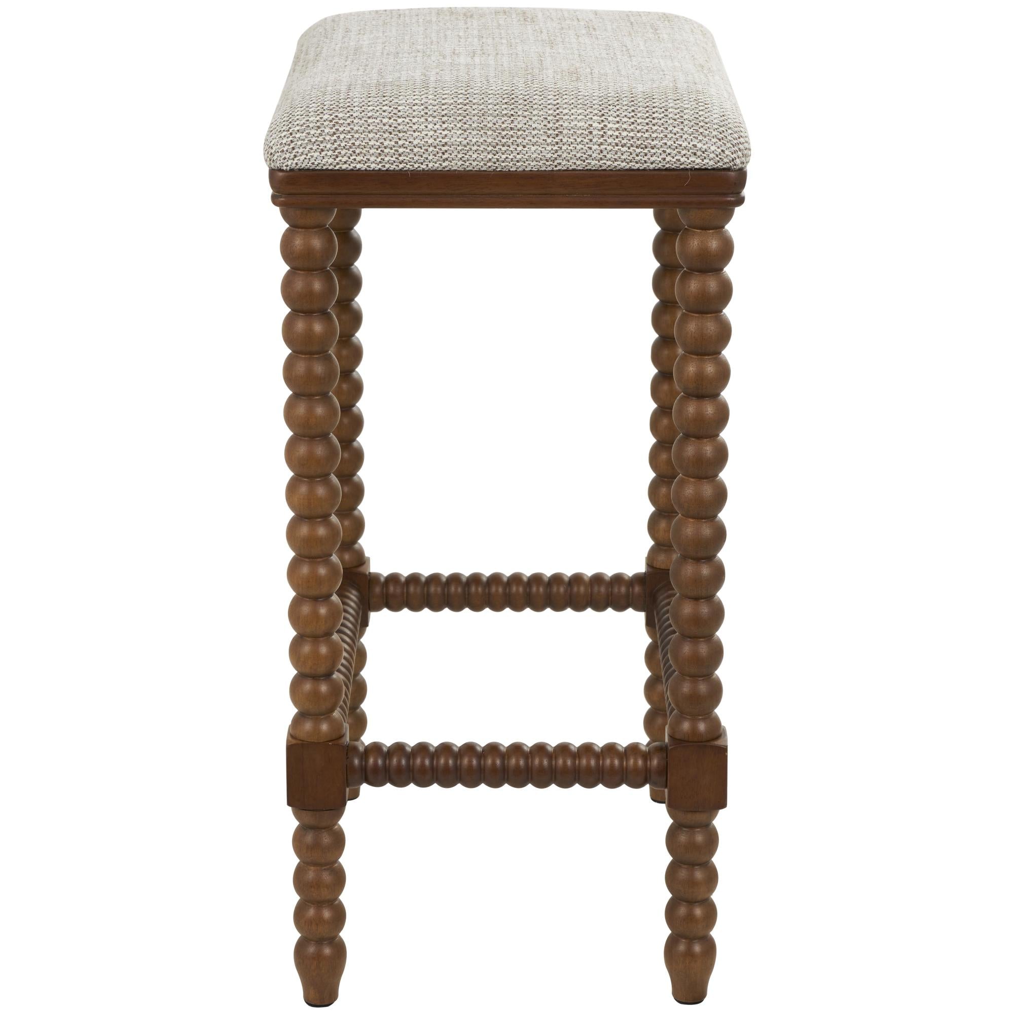 •The tall rectangular shape of the smooth bar stool for kitchen and its traditional wood turned legs with beaded shapes offer timeless elegance