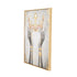 •The modern framed canvas is constructed with iron and polystone elements laid on the canvas, and encased with a fir frame to ensure support and stability